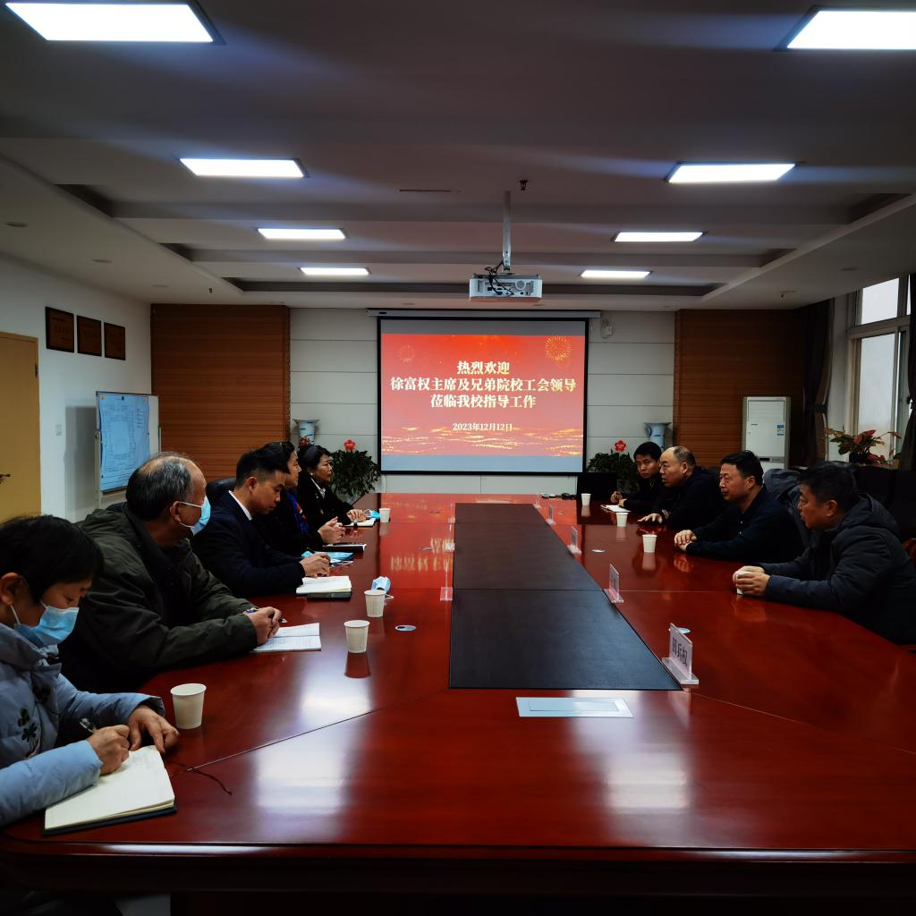 此次徐富权主席一行来校指导工作,学校党政领导高度重视,会前校党委书记刘振涛、校长祁玉龙一同和徐富权主席会面并进行了亲切交谈,对省教科文卫体工会给予学校的帮助支持表示感谢,同时希望今后继续加强沟通指导,在职工之家、创新工作室和工匠工作室建设等方面给予支持帮助。