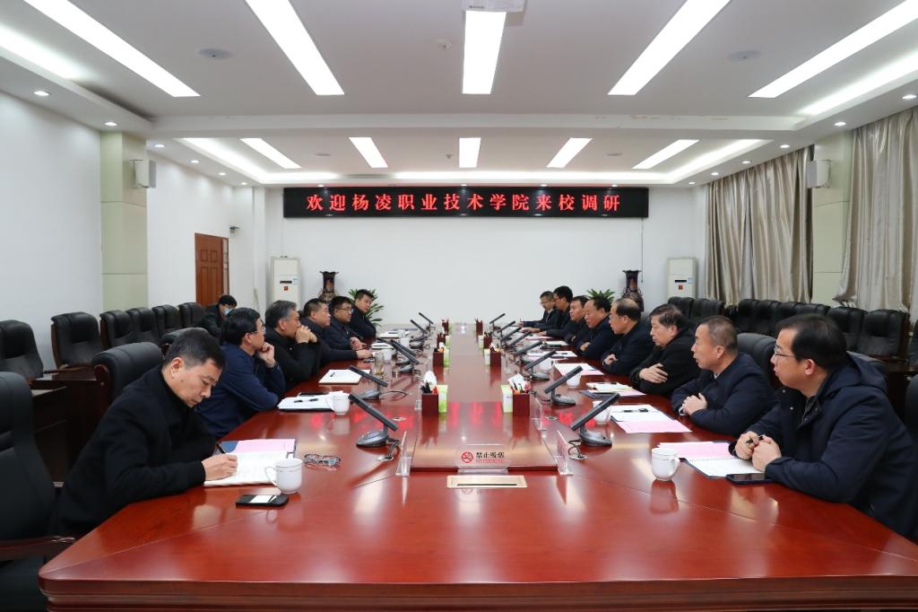 12月14日下午,杨凌职业技术学院党委书记王周锁、校长仲伟周带领学校领导班子一行来贝博官网调研交流。学校党委书记刘振涛、校长祁玉龙及其他在校的领导班子成员参加了调研座谈会,座谈会由刘振涛主持。