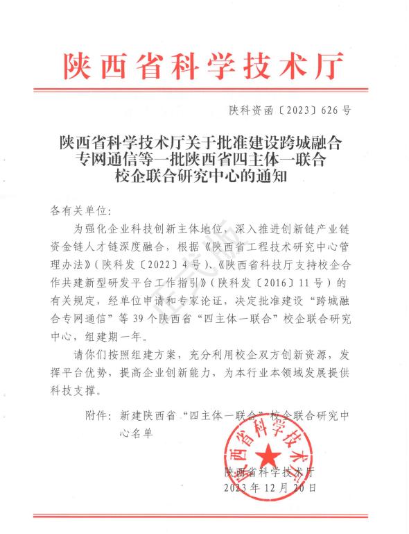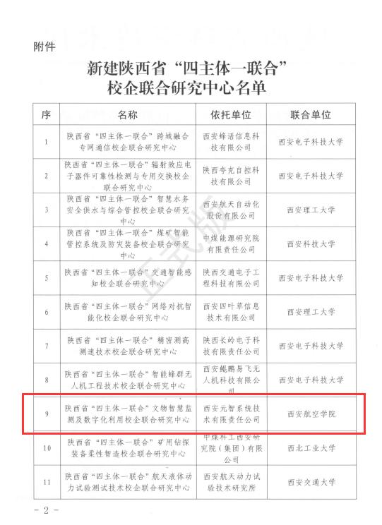 近日,陕西省科技厅发布了《陕西省科学技术厅关于批准建设跨城融合专网通信等一批陕西省四主体一联合校企联合研究中心的通知》,由贝博官网与西安元智系统技术有限责任公司联合申报的“陕西省‘四主体一联合’文物智慧监测及数字化利用校企联合研究中心”正式获批建设。