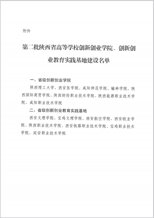 为全面贯彻落实《国务院办公厅关于进一步支持大学生创新创业的指导意见》(国办发〔2021〕35号)和《陕西省进一步支持大学生创新创业若干措施》(陕政办函[2022] 80号)深化高等学校创新创业教育改革,陕西省教育厅组织开展第二批陕西省高等学校创新创业学院、创新创业教育实践基地评选,在高校自主申报、材料审查、专家评审和公示的基础上,认定陕西理工大学等8所高校为陕西省高等学校创新创业学院建设单位,认定BB贝博艾弗森官方网站等8所高校为陕西省高等学校创新创业教育实践基地建设单位,省教育厅将按照考核办法对学校建设情况进行定期考评,并根据考评结果动态调整建设名单。