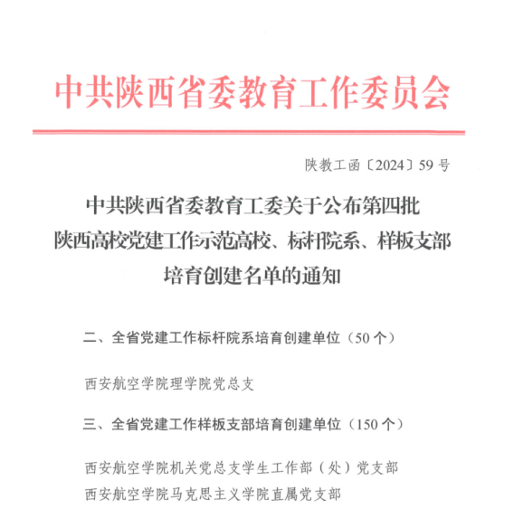 近日,陕西省委教育工委公布了第四批新时代高校党建示范创建和质量创优建设单位。贝博官网理学院党总支被评为“全省党建工作标杆院系”,机关党总支学生工作部(处)党支部和马克思主义学院直属党支部被评为“全省党建工作样板支部”。同时,学生工作部(处)党支部和马克思主义学院直属党支部被省委教育工委推荐至教育部参加“全国党建工作样板支部”的评选。