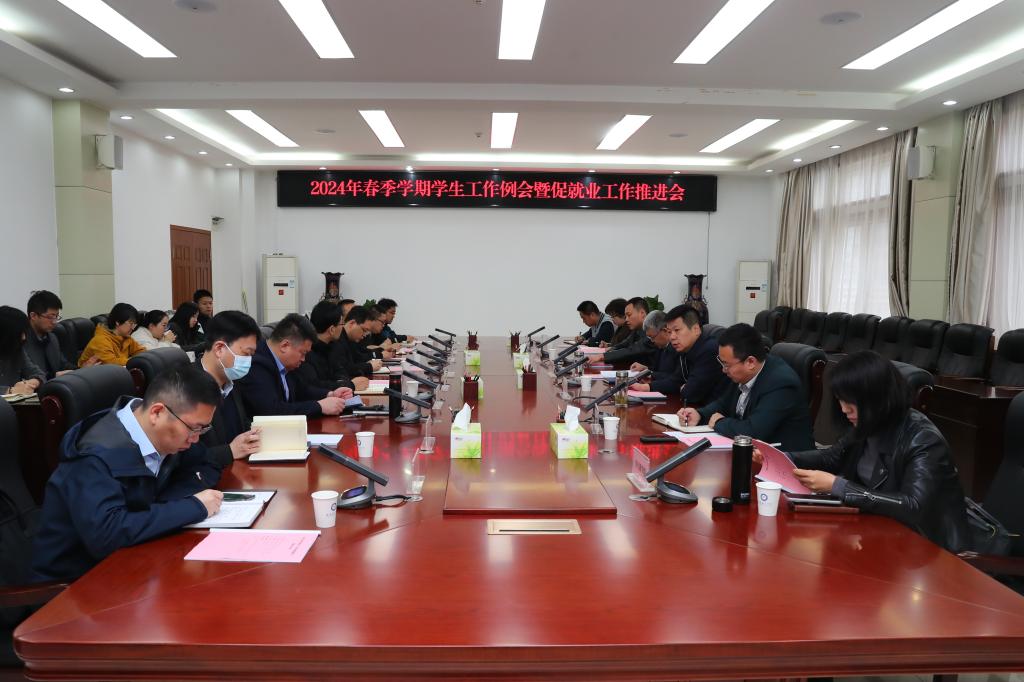 学工部部长李波从强化价值引领、推进高质量就业、提升综合治理效能、优化服务完善帮扶体系、守住平安校园底线等五个方面具体部署了2024年学生和就业工作重点任务。