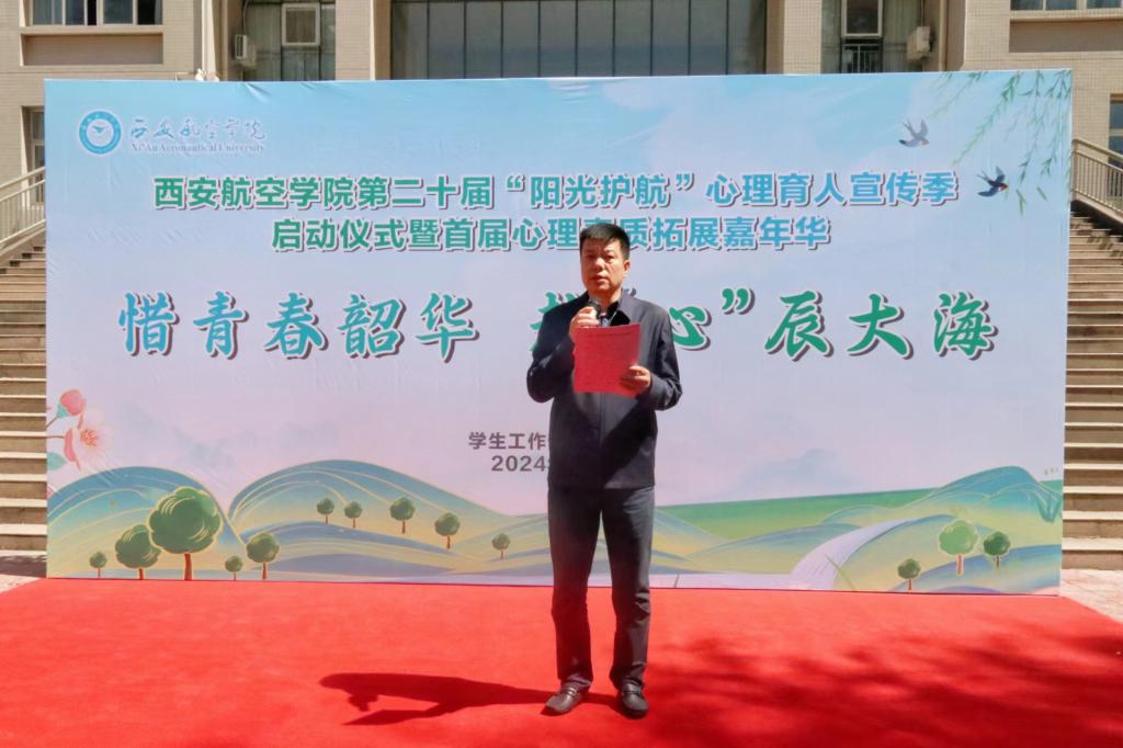 在启动仪式现场中,由民航学院、人文与外国语学院、经济管理学院同学带来了歌曲《篇章》和舞蹈《特别待遇》。学生工作部部长李波就贝博官网第二十届“阳光护航”心理育人宣传季活动做了工作安排。人文与外国语学院辅导员杨秦钰、学生张琦轩分别代表辅导员和全体学生做了交流发言,并向师生发出了倡议。