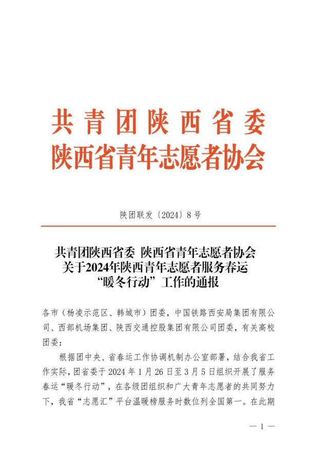 近日,共青团陕西省委发布了《关于2024年陕西青年志愿者服务春运“暖冬行动”工作的通报》,贝博官网王泽宇、刘晋锟两名同学荣获2024年陕西青年志愿服务春运“暖冬行动”优秀志愿者。