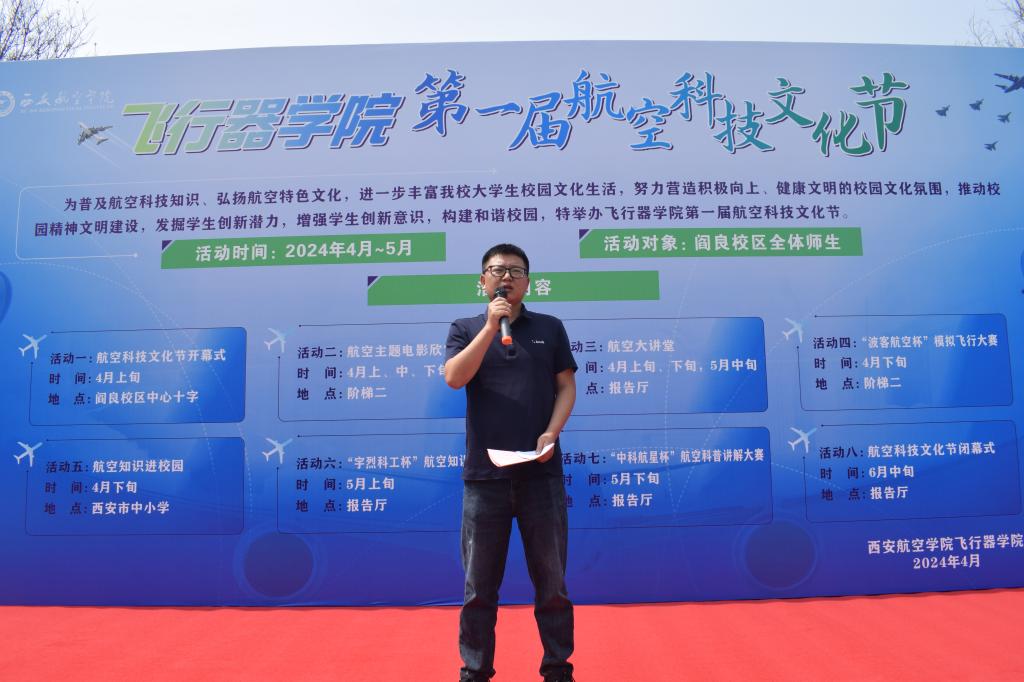 飞行器动力教研室主任白涛和学生代表董向阳共同表达了对本届航空科技文化节的期待,并呼吁广大师生积极参与各项活动,通过亲身体验和感受,加深对航空科技文化的理解和认识。