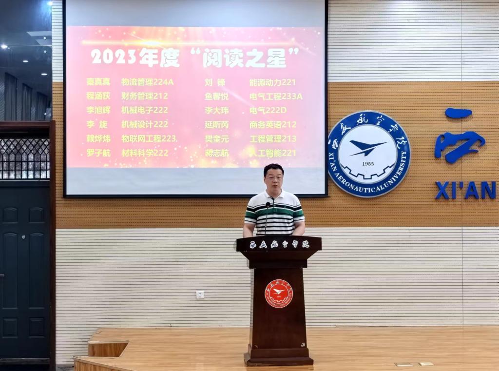 图书馆直属党支部书记赵建涛介绍读书节的各项活动安排。校团委副书记米嘉琪宣读2023年度校园“阅读之星”表彰名单,学生工作部(处)副处长刘佳为获奖同学颁发证书和奖品。