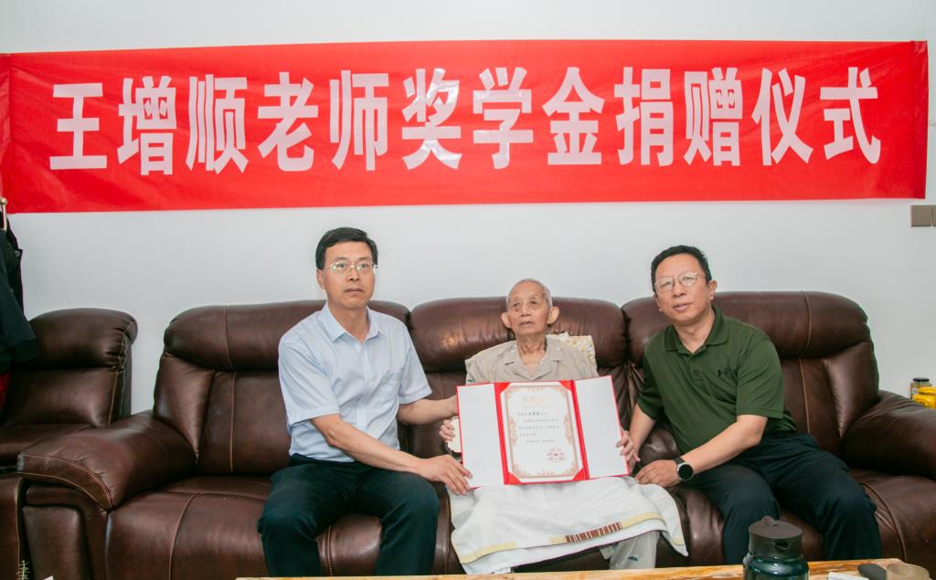 86岁高龄的王增顺老师表示,自己在平凡的教师岗位默默育人,退休生活也很充实,63年融入到学校大家庭工作和生活的情感愈发深厚。空闲下来,总想着能为学校做点有意义的事来回报学校,愿意把自己积攒的微薄退休金捐出来,关爱品学兼优学生成长成才。