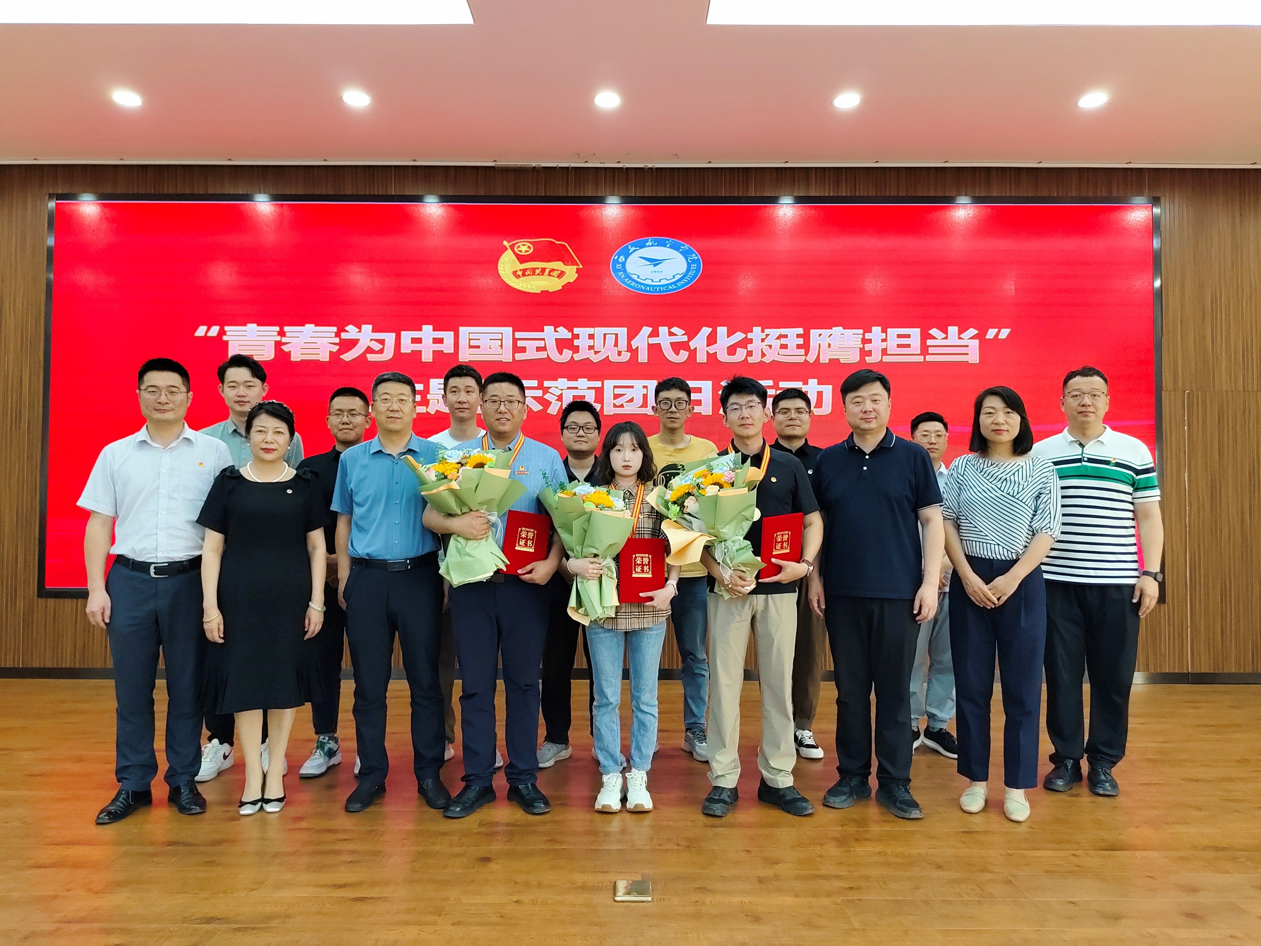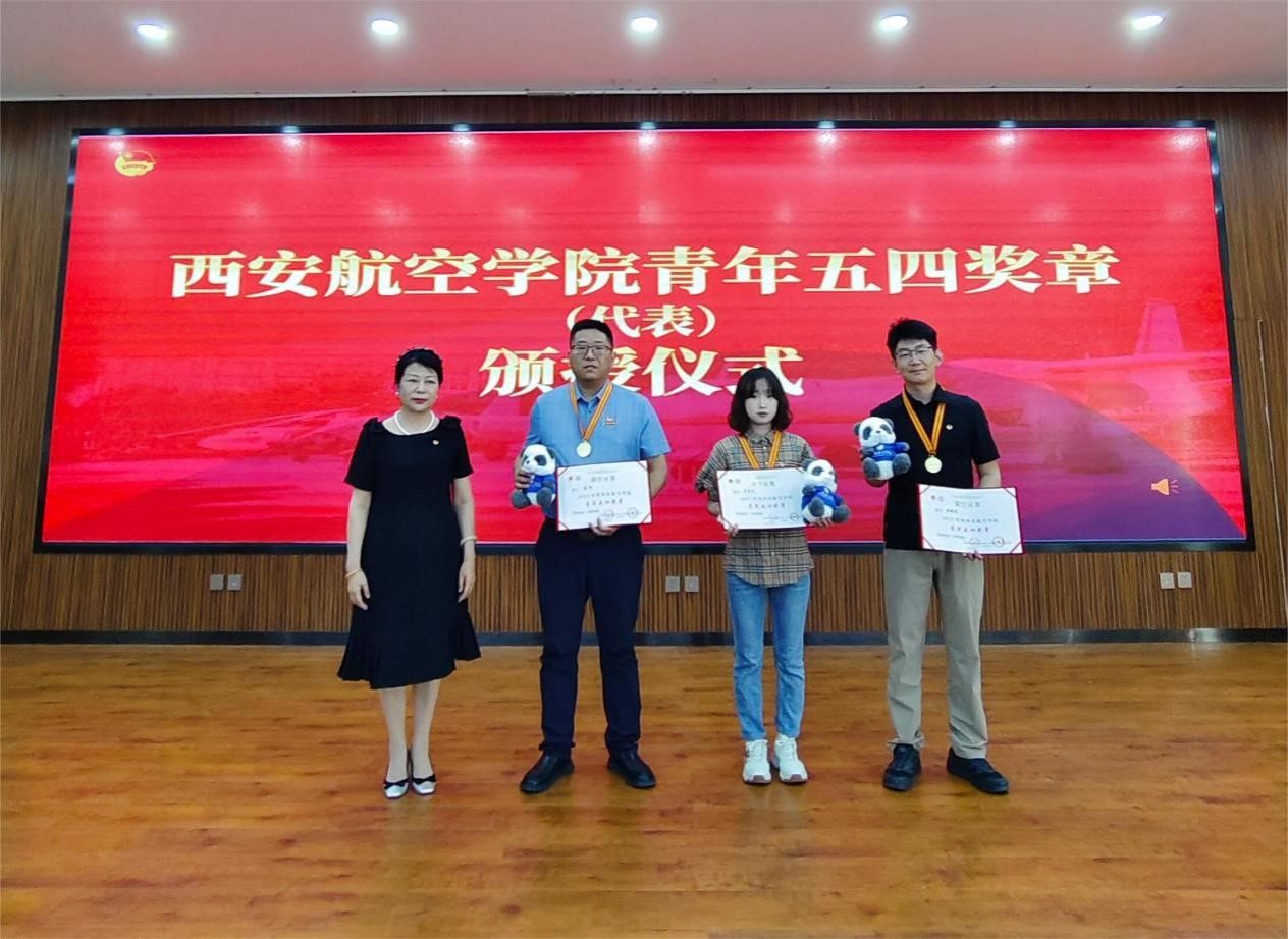 嘹亮的国歌声中,主题示范团日活动正式开启。首先由校工会主席陈冬梅为2023年度BB贝博艾弗森官方网站青年五四奖章获得者代表能源与建筑学院副院长张琛、飞行器学院教师梁毅辰、民航学院2020级本科生李彦直颁发证书、奖章。