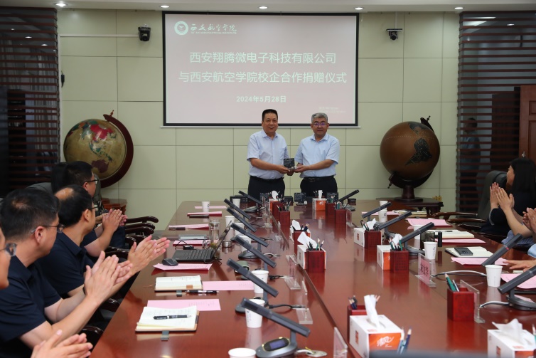 5月28日上午,贝博官网与西安翔腾微电子科技有限公司校企合作科研设备捐赠仪式在莲湖校区9楼会议室举行。校长祁玉龙、副校长宋文学、科技处、教务处、计算机学院、电子工程学院、理学院负责人及相关领域骨干教师出席会议,会议由宋文学主持。