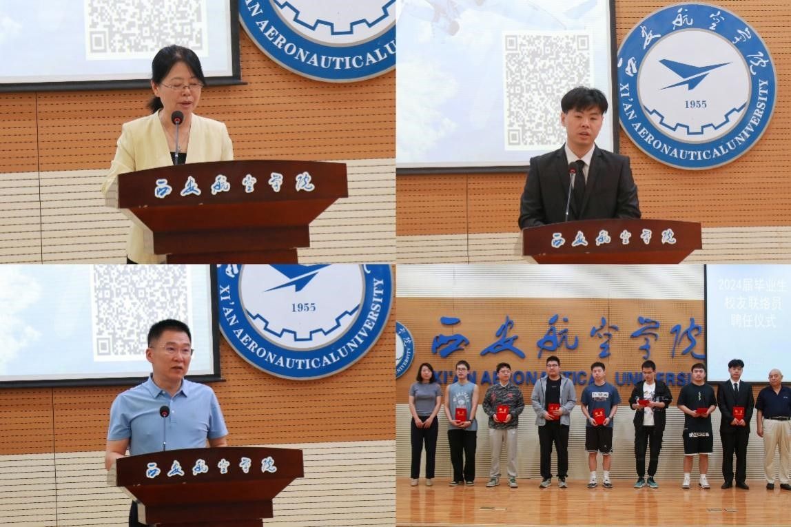 飞行器制造201班孙腾飞代表2024届校友联络员发言。孙腾飞表达了对于被选聘为联络员的骄傲心情,并表示联络员的职责不仅是加强校友之间的联系,更是要传承和弘扬母校的精神,为母校的发展贡献自己的力量。