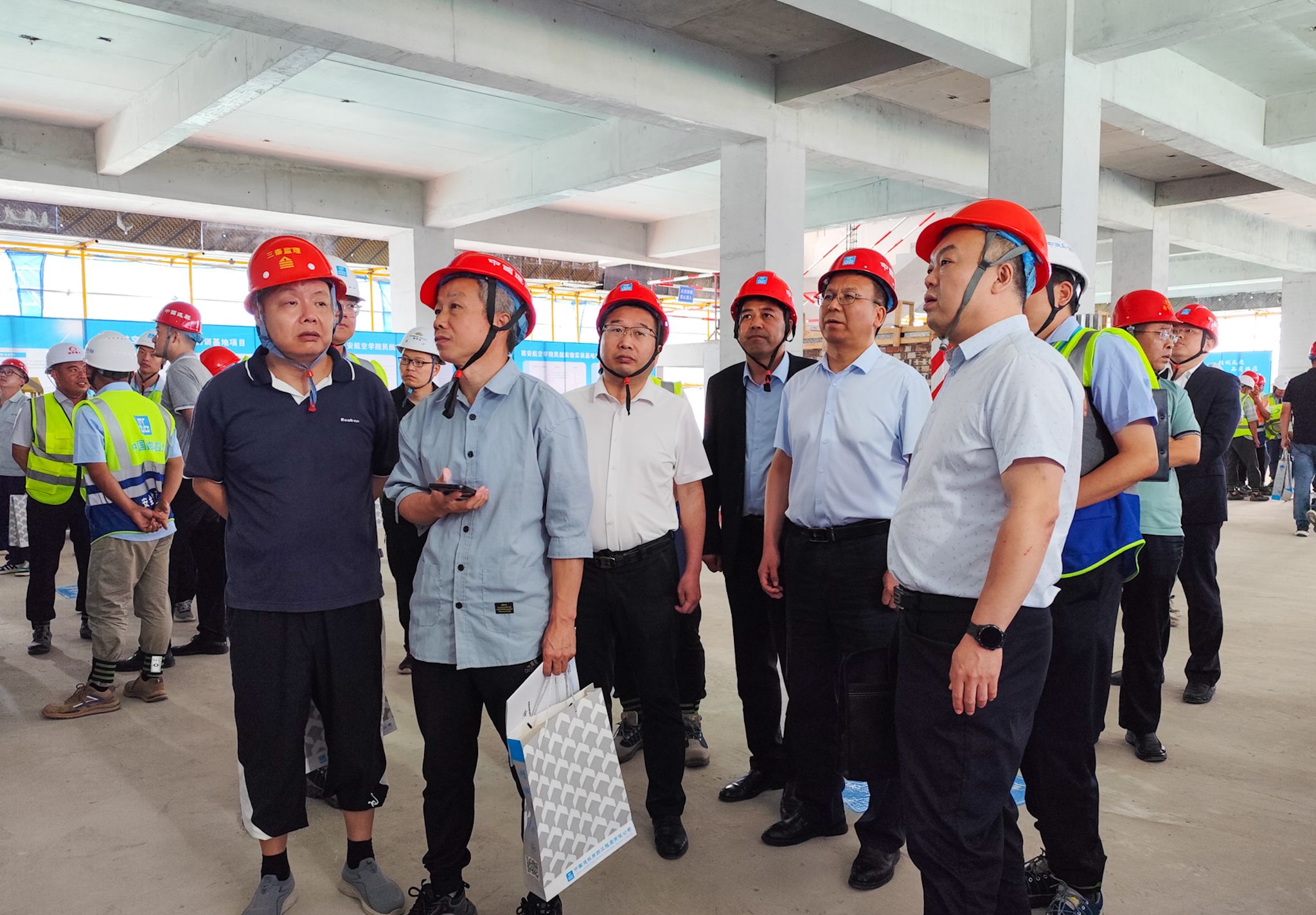 最后,全体参会人员对民航实验实训基地项目安全标准化建设现场进行观摩。