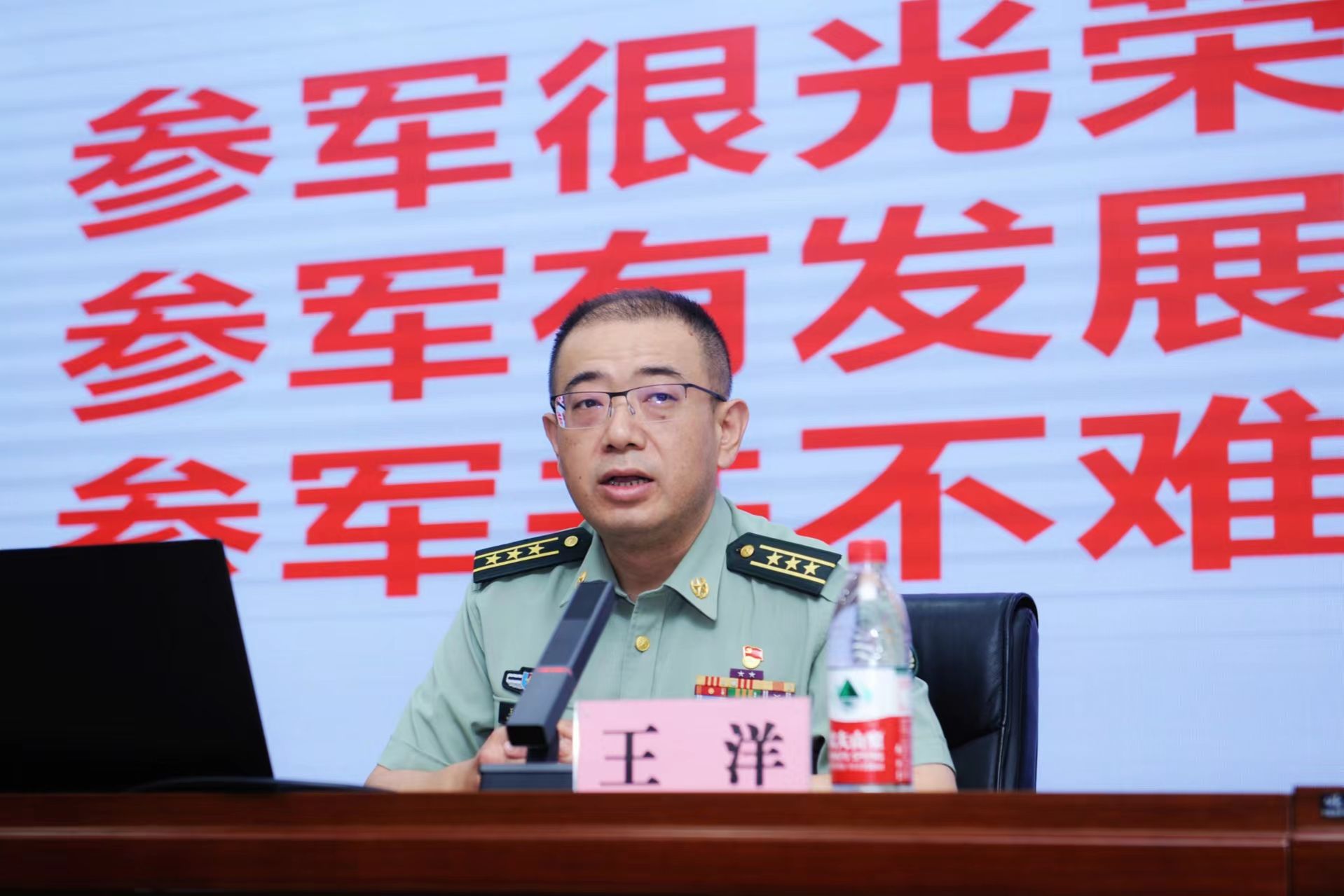 王洋从参军入伍政治荣誉、经济保障、发展前途、成长成才、人生历练、属地政策等方面作了大学生应征入伍宣讲动员,希望贝博官网有志青年积极响应,去绿色军营为我国推进现代边海空防建设,实现强军目标、民族复兴贡献自己的青春力量。