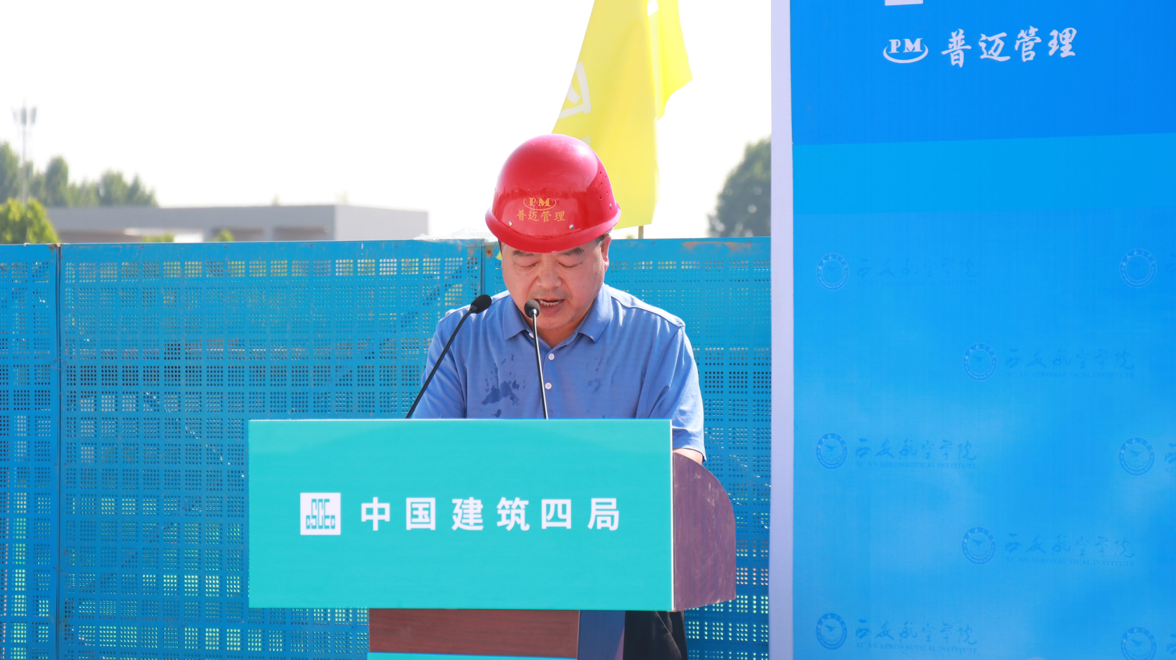 校长祁玉龙致辞代表学校向一直以来给予我们大力支持的省发改委、省教育厅、阎良区委区政府、西安航空基地管委会表示衷心的感谢,向日夜奋战在民航实验实训基地项目建设工地的全体建设者致以亲切的问候。自项目开工以来,参建单位坚持质量第一、星夜兼程、确保工期,克服种种困难,历经风雨,众志成城,终于迎来了今天的封顶时刻,为项目后续工程的顺利推进奠定了坚实的基础。衷心希望省发改委、省教育厅、阎良区委区政府和基地管委会,能够一如既往关心、支持学校发展;希望参建单位在后续的装饰装修和安装工程建设中继续加强协作,科学管理,坚持高起点、高标准、高要求,突出建筑特色,确保工程建设质量与安全,把民航实验实训基地建设成为经得起历史检验的百年大计工程、成为航空学院师生求知问学的理想殿堂,为工程全面竣工、如期交付使用而不懈努力。