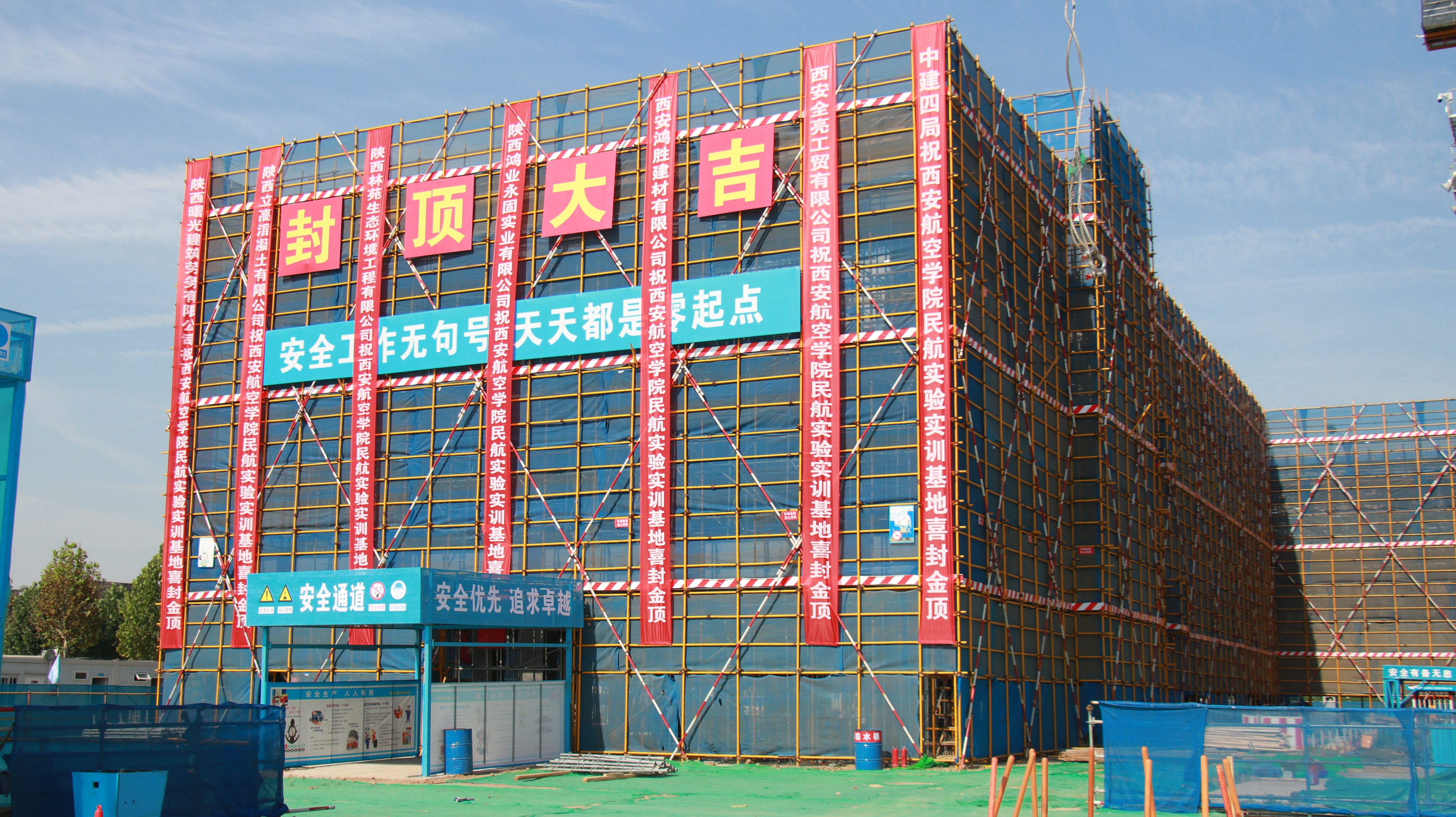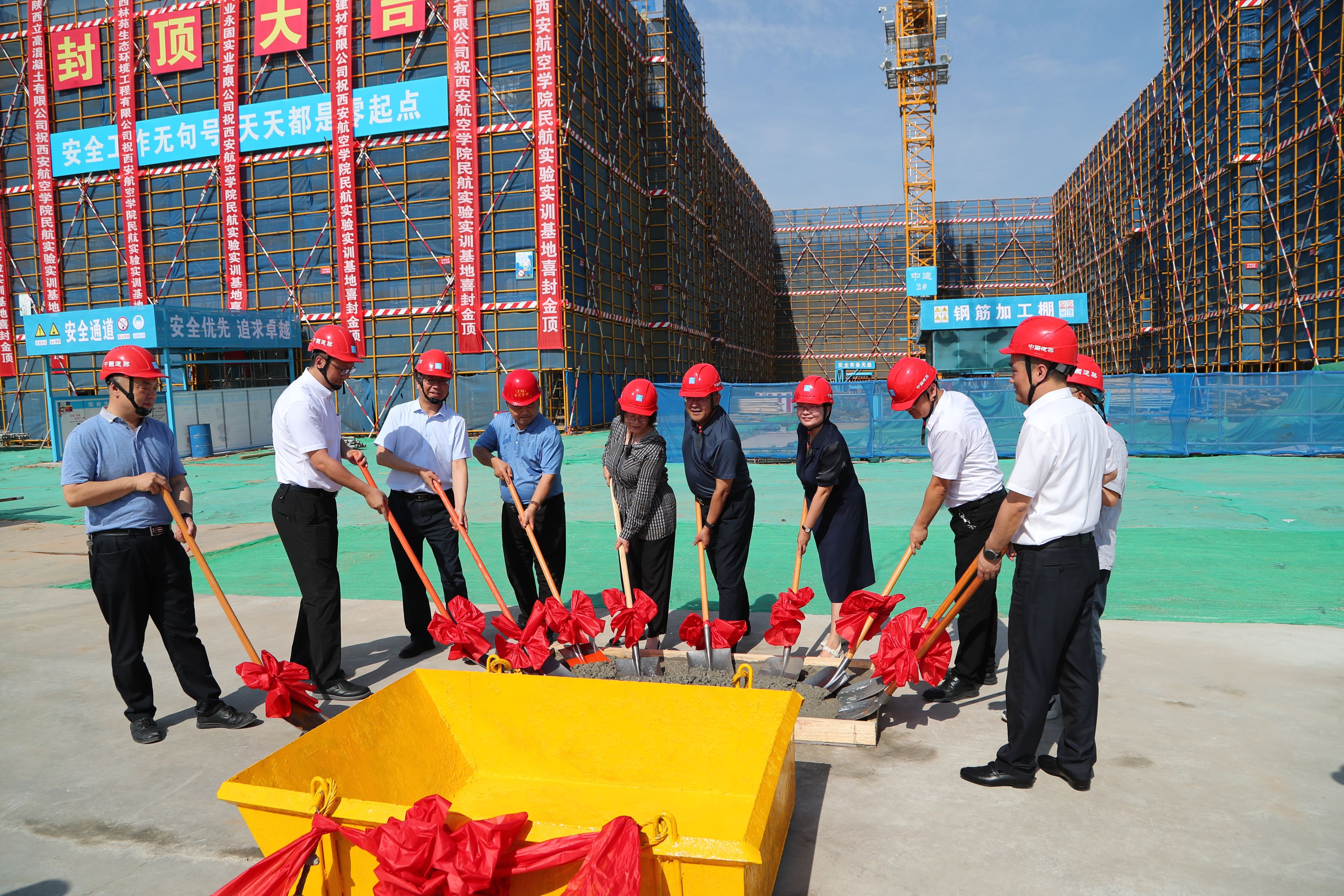 6月13日上午,贝博官网民航实验实训基地项目主体结构封顶仪式在阎良校区举行。校长祁玉龙、副校长宁永录,西安航空基地管委会副主任仝秀丽,阎良区人民政府副区长张小玉,省发改委社会发展处张小飞,省教育厅发展规划处马贝,中国建筑第四工程局有限公司西北公司党委副书记、总经理梁二雷,普迈项目管理集团有限公司董事长李三虎,中国建筑西北设计研究院第四建筑设计院总建筑师吴斌,学校党政办公室、基建处、财务处、审计处、发展规划与学科建设处、国有资产与实验室管理处、后勤保障处、保卫处、民航学院、飞行器学院负责人出席了封顶仪式,民航实验实训基地项目各参建单位相关人员及工人代表参加了封顶仪式。封顶仪式由副校长宁永录主持。