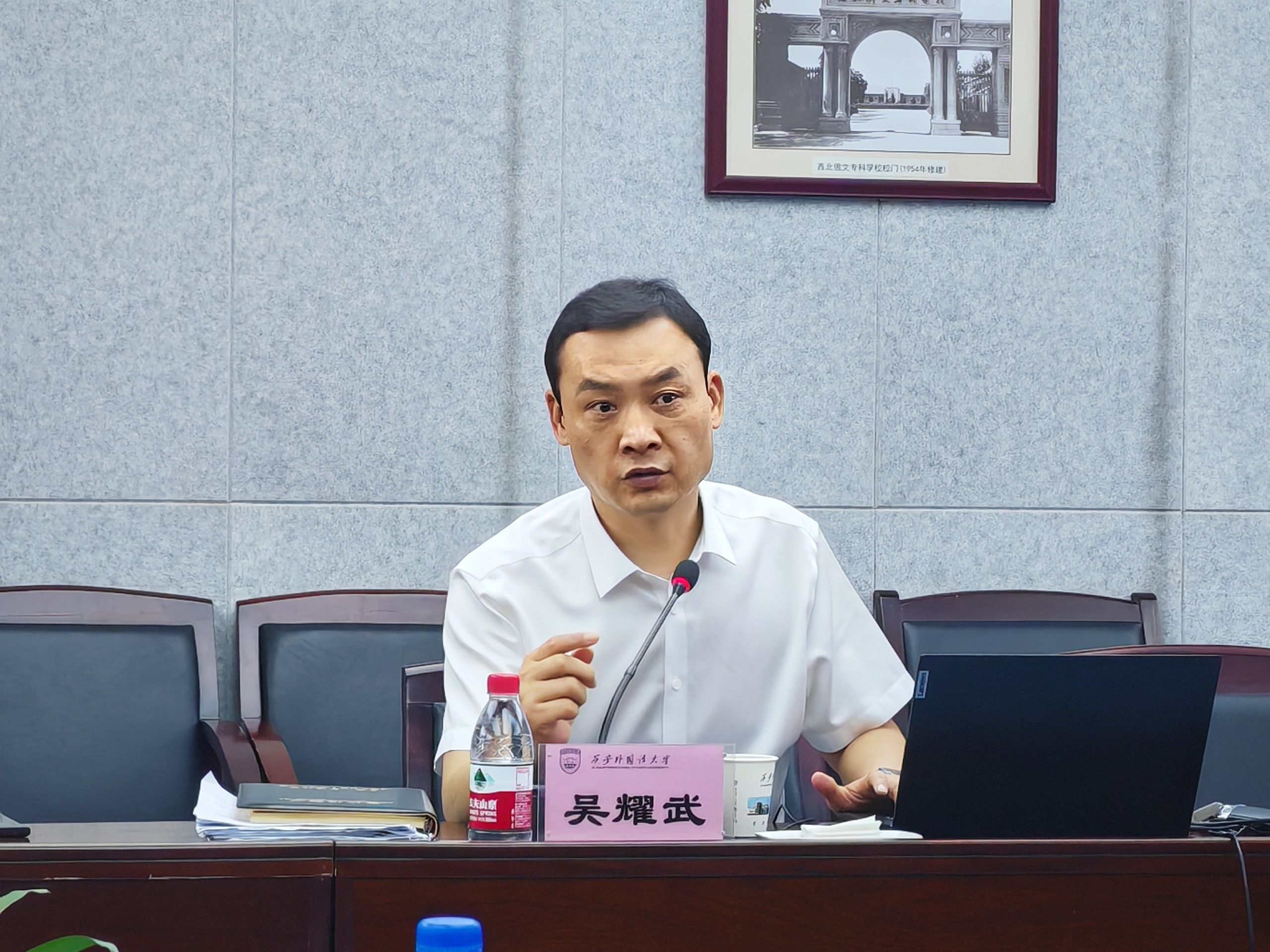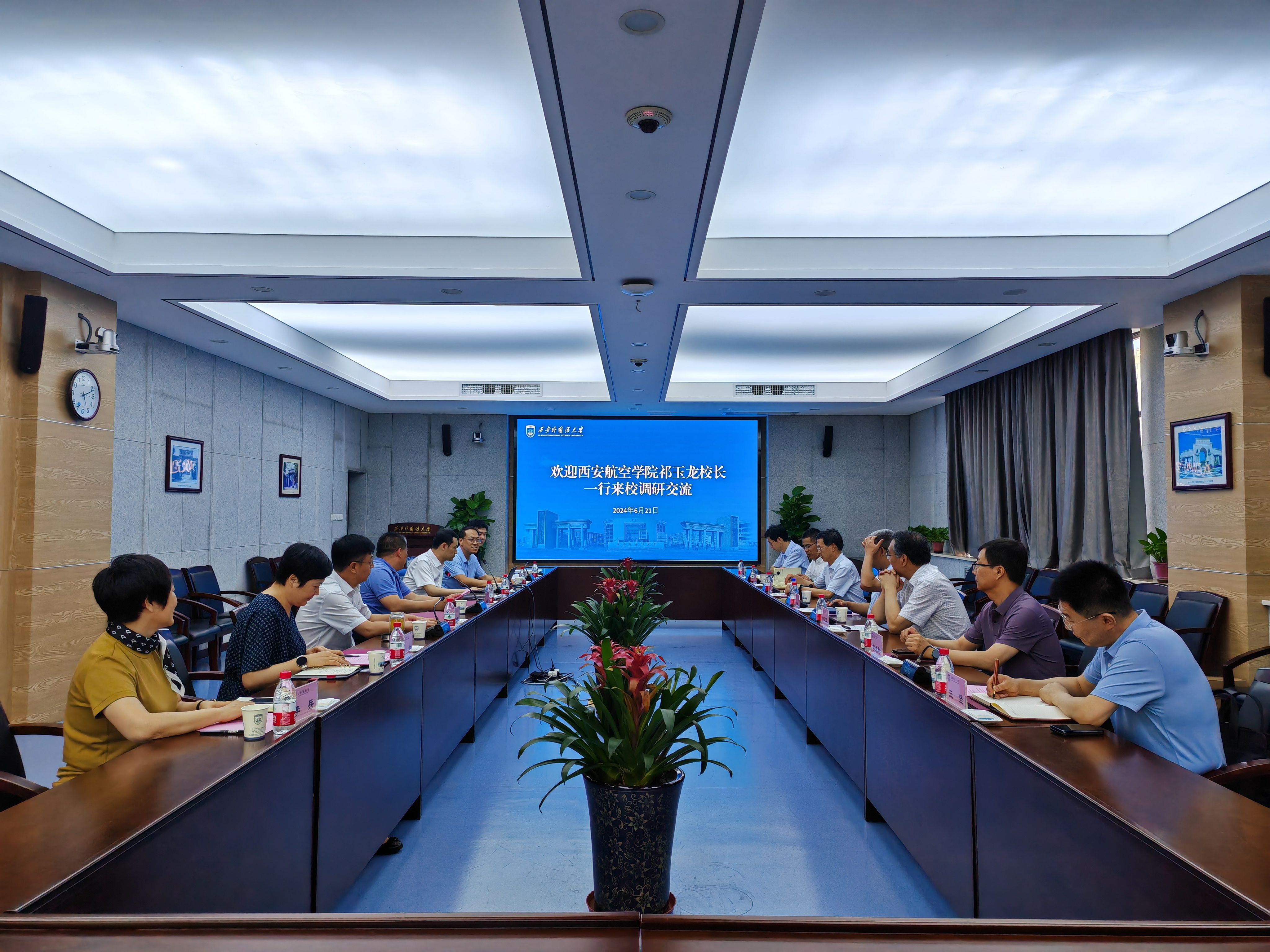 6月21日下午,校长祁玉龙、党委副书记韩明军、副校长宋文学等一行7人赴西安外国语大学进行调研。西安外国语大学党委书记刘振涛、校长吴耀武、副校长姜亚军,以及该校党校办、人事处、教务处、国际合作交流处等相关负责同志参加座谈。