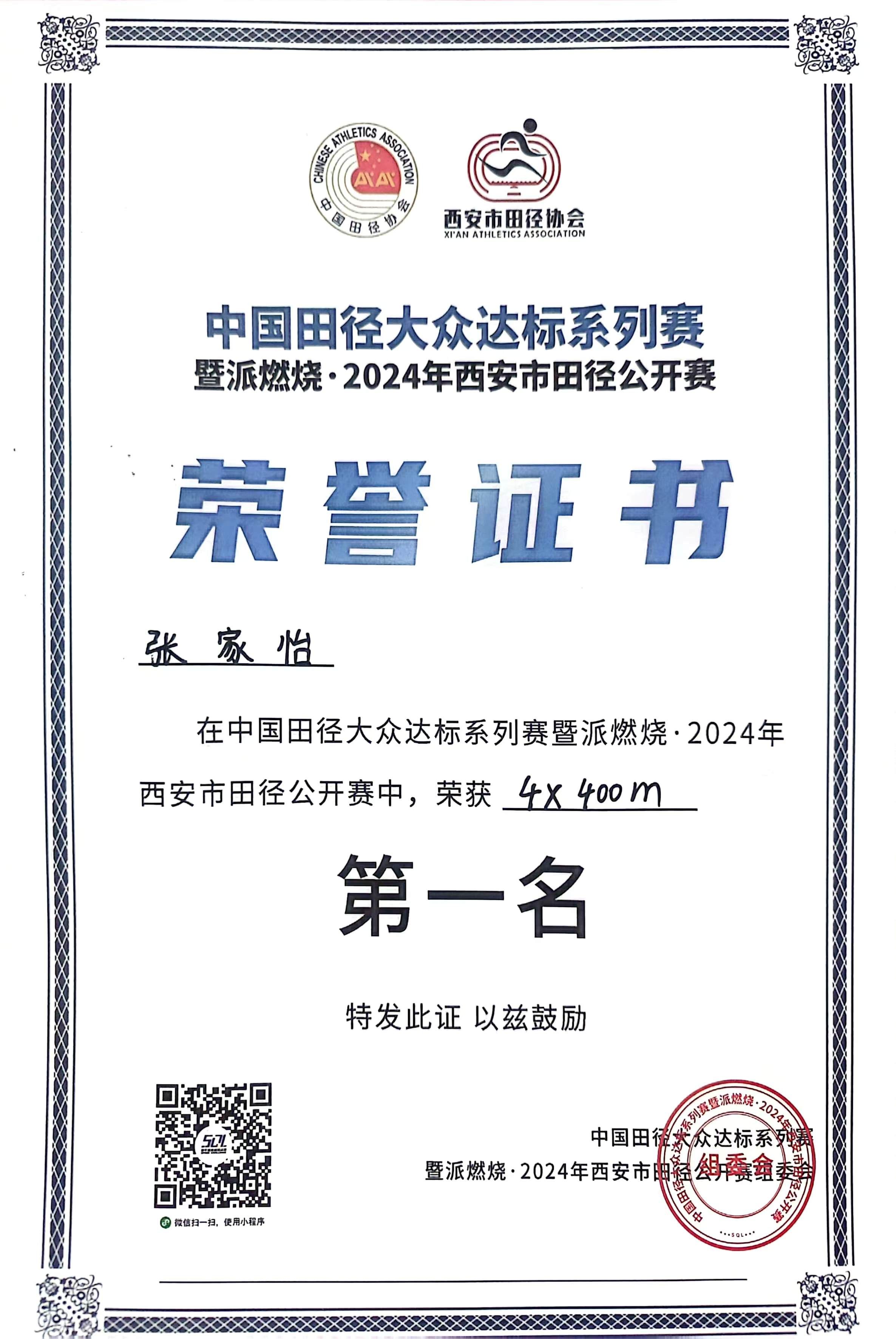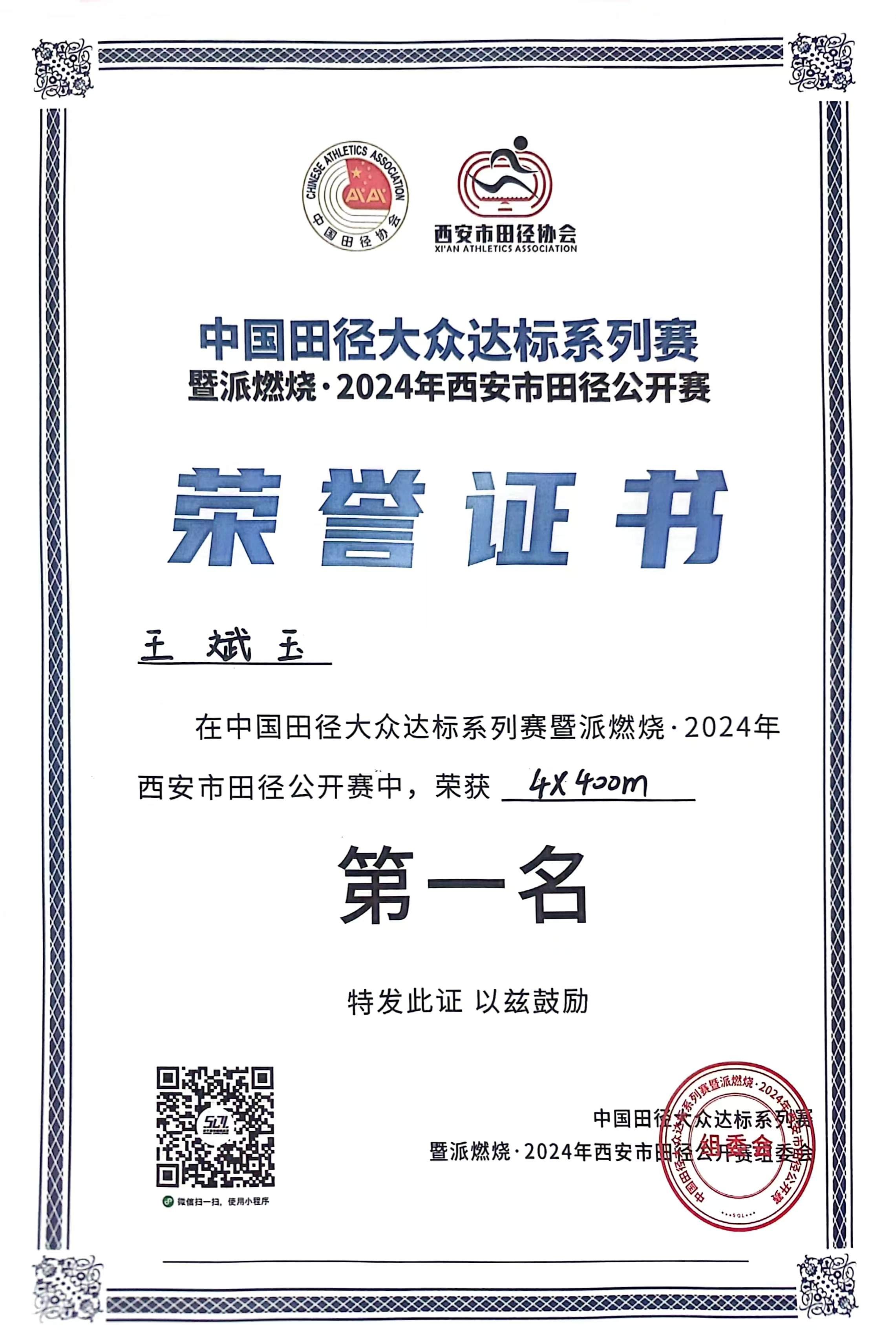 在比赛中,西航教师和学生顽强拼搏、勇创佳绩,徐新老师在A25组别获得男子1500米第一名,贝博官网材料工程学院肖佳炜获得女子公开组立定跳远第一名,材料工程学院学生李佳伟获得男子公开组1500米第二名,电子工程学院罗婧瑜获得女子公开组400米第三名,女子公开组团体4×100米接力获得第一名,男子公开组团体4×400米接力获得第一名的优异成绩。