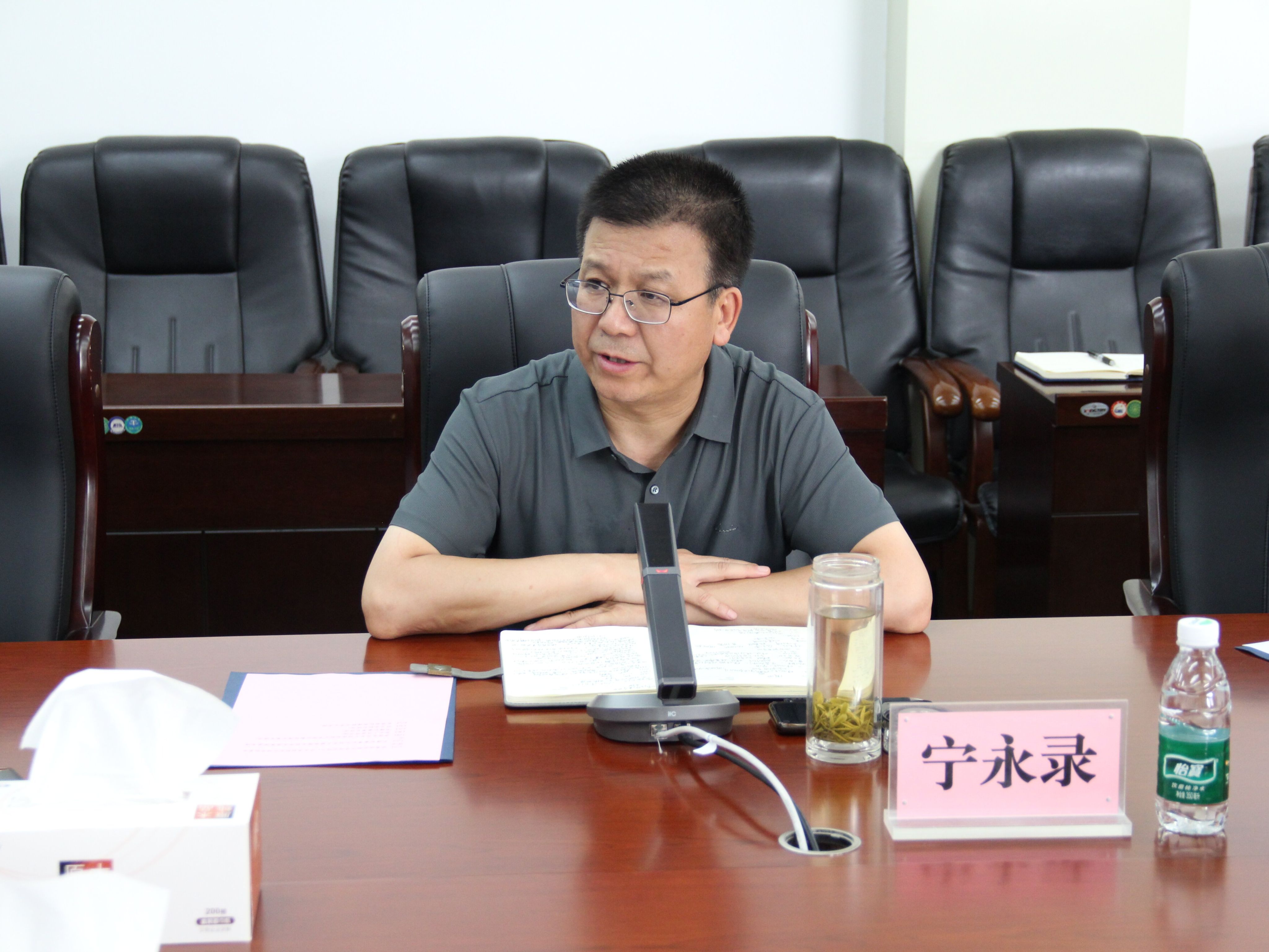 7月28日上午,苏大教育服务投资发展集团董事长韦曙和、苏大教服集团首席文化官毛波杰、东吴服务产业集团西安分公司经理刘满星一行3人来贝博官网调研交流后勤服务保障工作。学校校长祁玉龙、副校长宁永录出席会议,党政办公室主任李永刚、后勤保障处处长罗俊忠、副处长文杰和各科相关负责同志参加座谈会。会议由宁永录副校长主持。