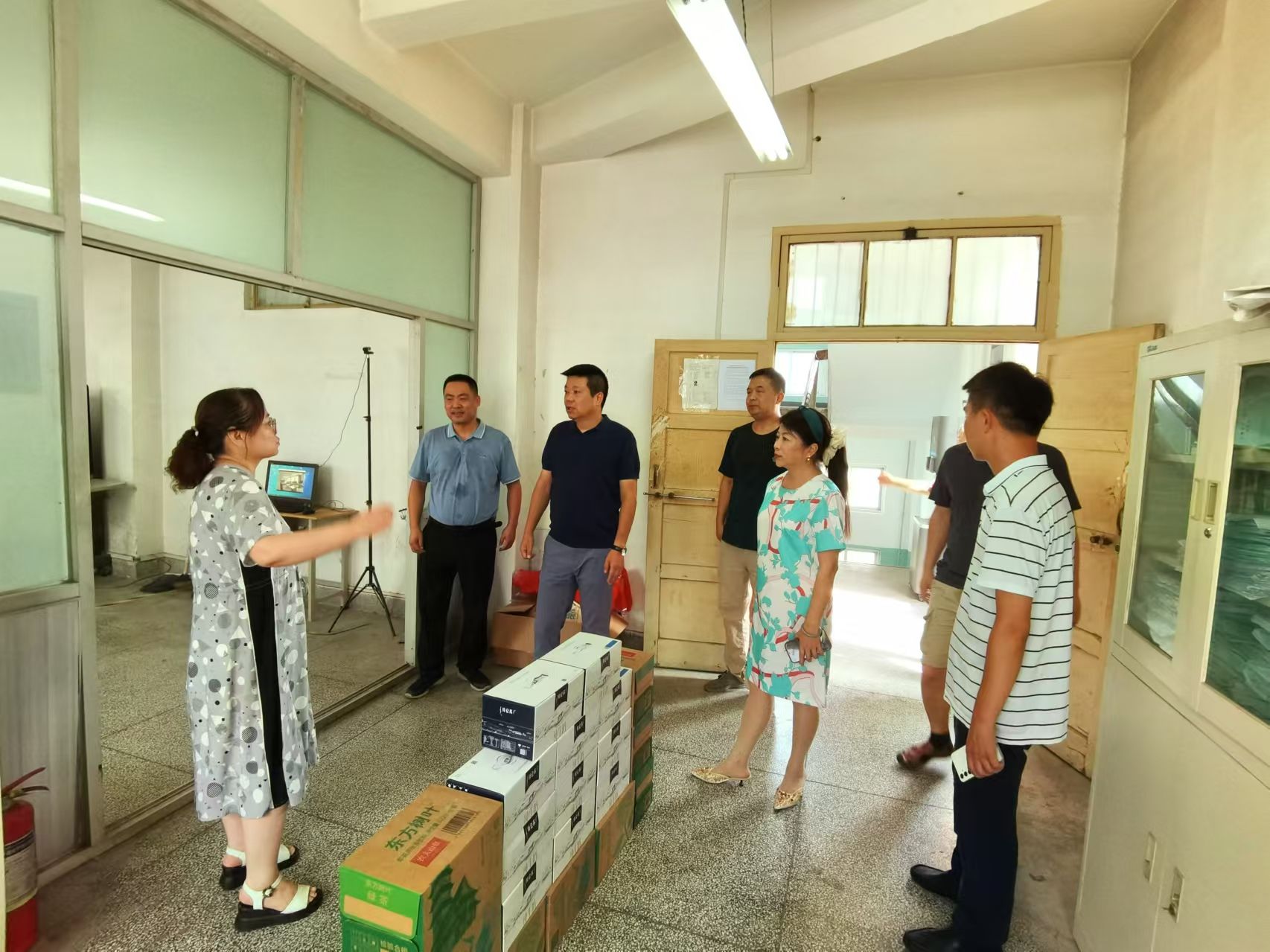 党委副书记曹渊一行前往工作现场,与坚守岗位的工作人员进行亲切交流,认真听取他们的工作汇报,对大家牺牲休息时间,不畏酷暑、尽职尽责的工作态度表示高度赞扬和肯定,叮嘱大家要注意身体,合理安排休息时间,确保个人健康与安全,并代表学校送上防暑降温品。