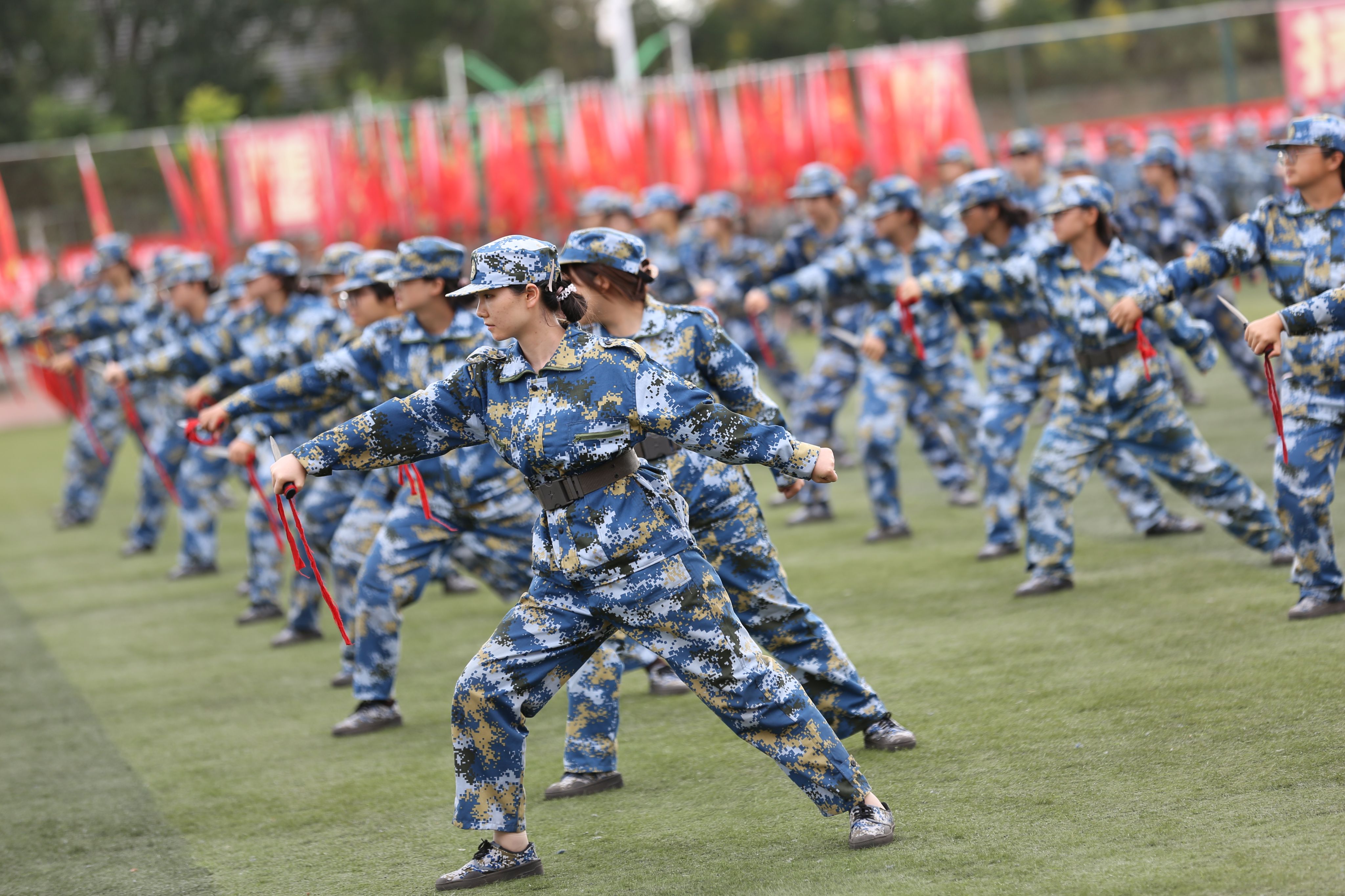 口号掷地有声,步伐整齐统一,军训汇演正式开始!2024级军训团依次进行了阅兵分列式和军训科目展示。各军训方阵军姿挺拔、口号嘹亮、精神抖擞、气势如虹的依次经过主席台接受庄严检阅,赢得了在场领导和观众的阵阵掌声。新生们训练有素,勇敢坚毅,全面展示了西航学子蓬勃向上的青春风采。