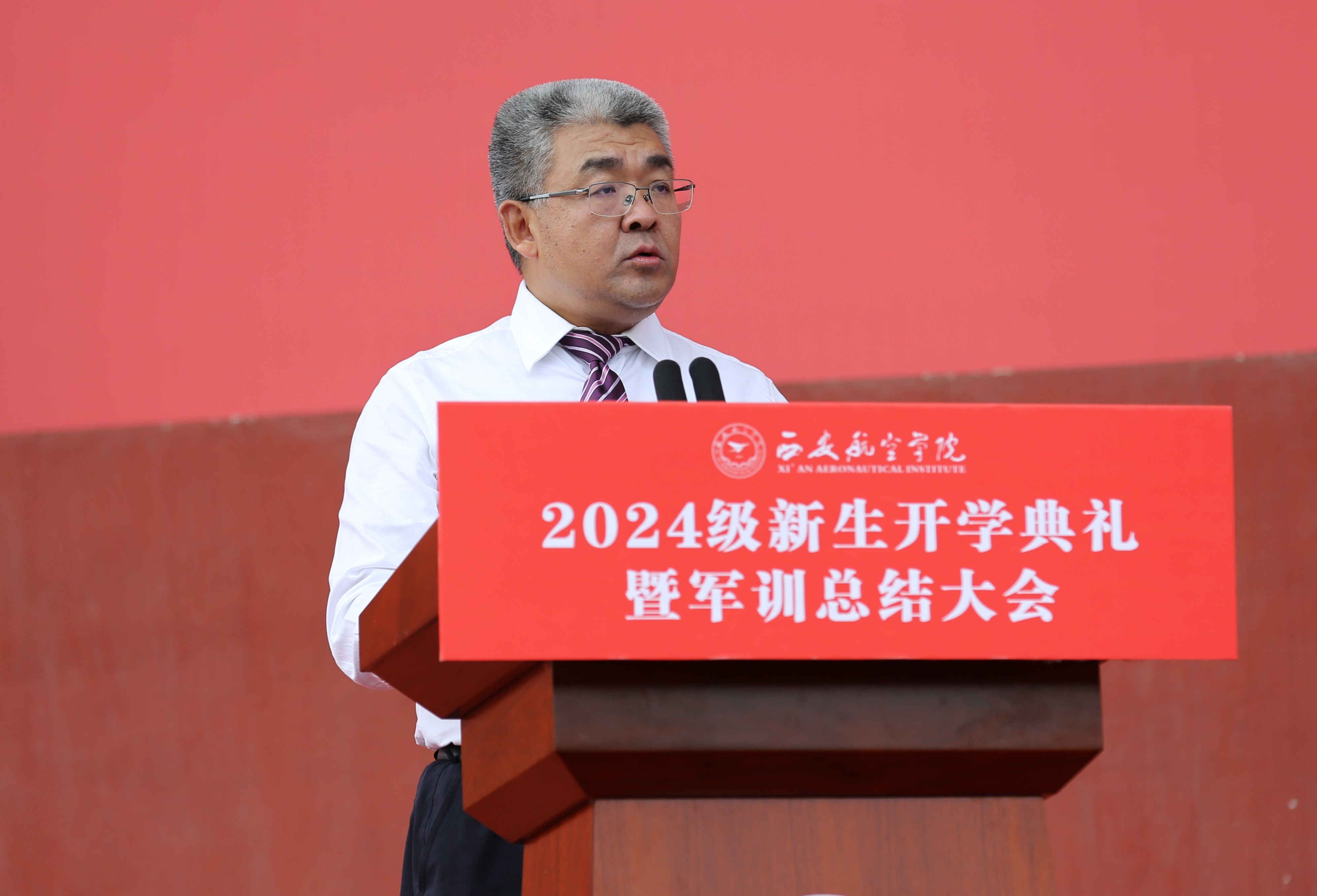 祁玉龙代表学校对2024级全体新同学表示祝贺和欢迎,介绍了学校的基本情况和近年来所取得的成果亮点,深情寄语广大新同学要弘扬“忠诚奉献、自力更生、艰苦奋斗、勇攀高峰”的新时代航空报国精神,努力成长为对祖国、对社会、对家庭有用的人。祁玉龙对新同学提出了三点希望。一是要心有家国,忠诚奉献,牢记使命担当,把个人理想和祖国命运、个人志向和民族复兴紧密相连,坚韧执着、自力更生,展现青春作为。二是潜心实践,求实创新,主动学习新知识、心无旁骛求知问学,在解决问题、战胜困难、寻求突破中提升自我核心竞争力,在社会实践、科技竞赛中彰显青春风采。三是接续奋斗,追逐梦想,在吃苦耐劳中砥砺意志品质,在攻坚克难中锻造过硬本领,在推进强国建设、民族复兴伟业中贡献青春力量。(文/学生工作部(处) 高攀 图/党委宣传部 审核/李波)