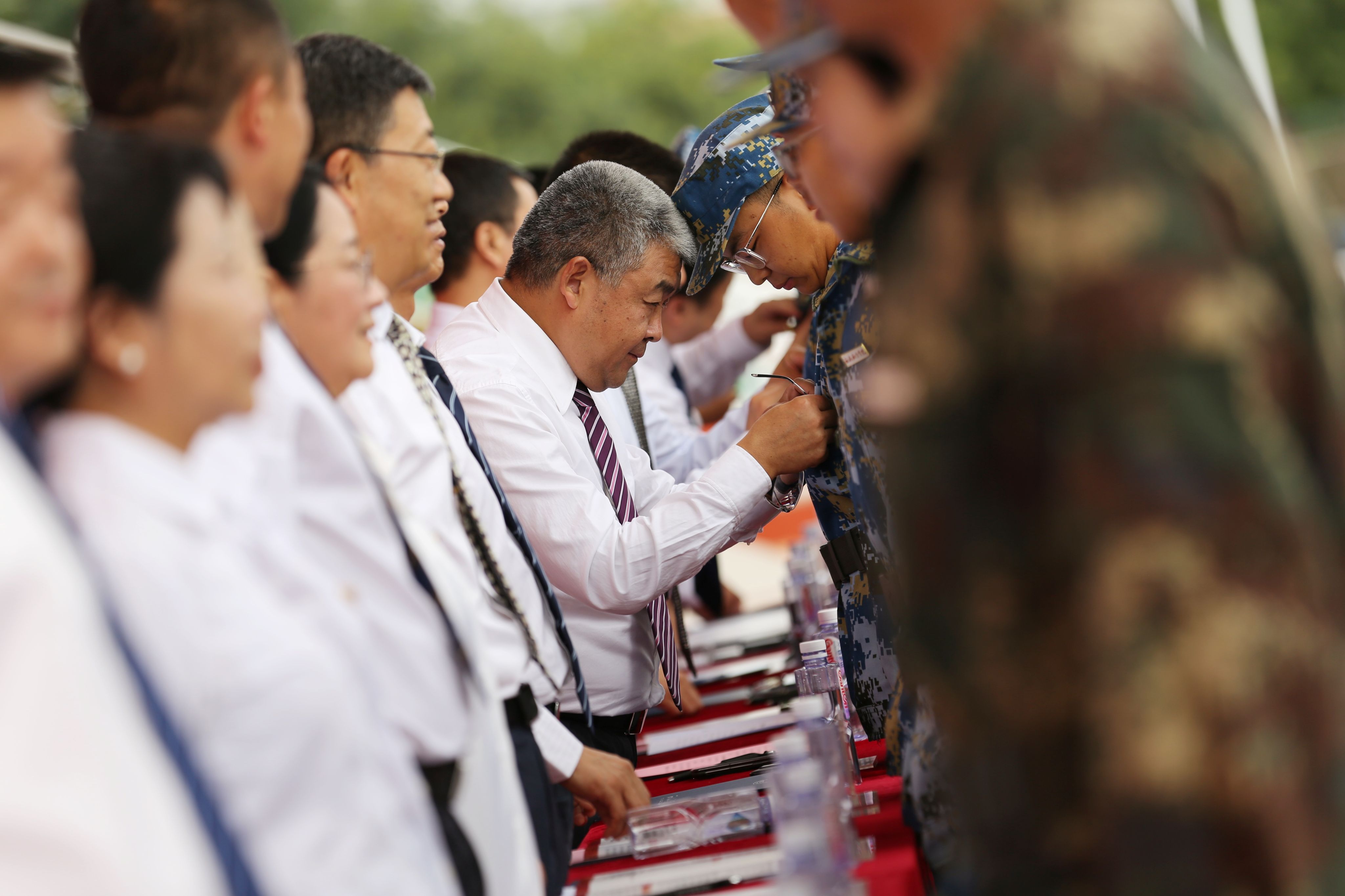 典礼上,与会领导为新生代表佩戴校徽,共同见证全体新生开启人生的崭新一页。
