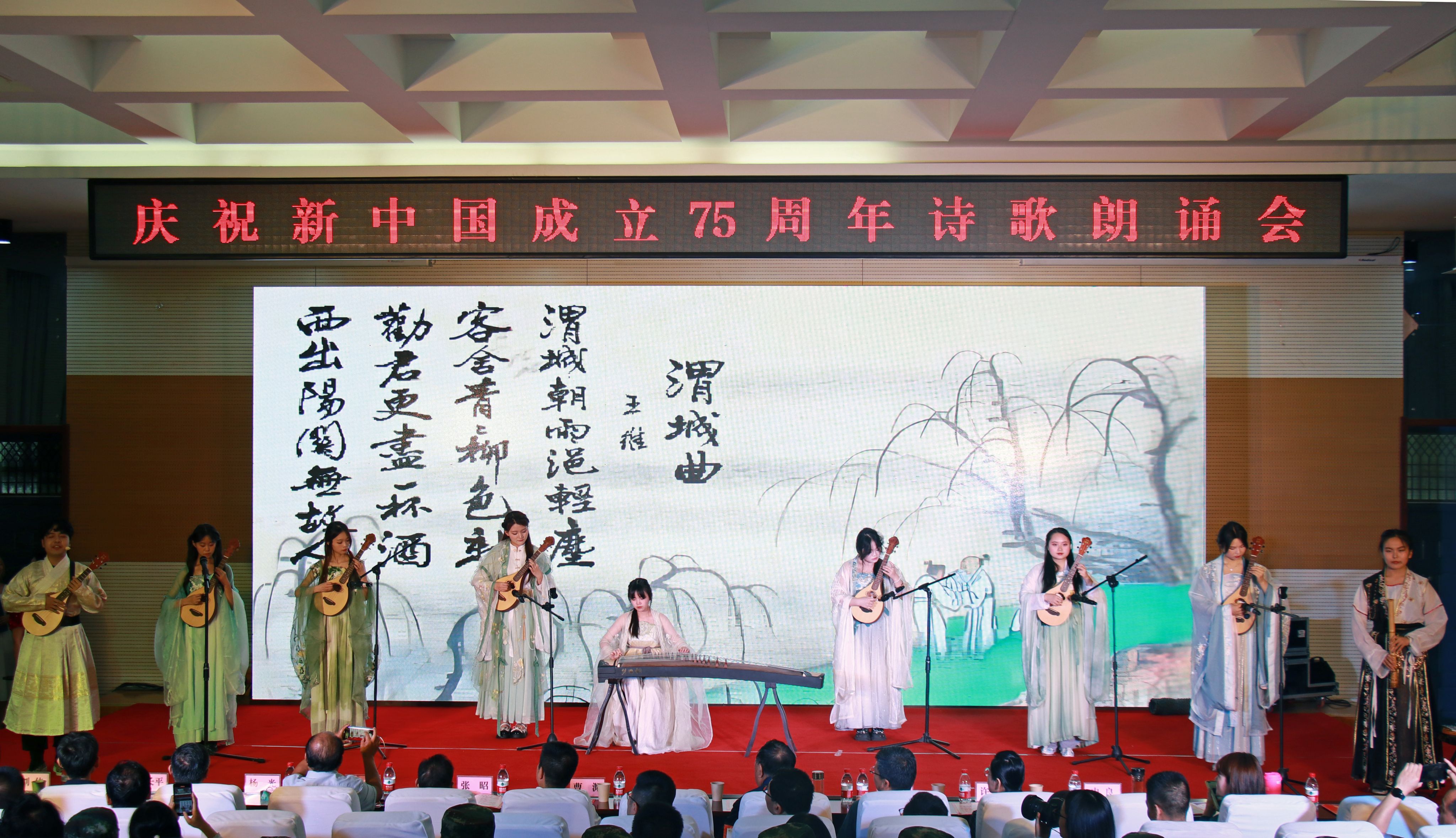 6月6日,党委宣传部、人文与外国语学院(公共艺术教育中心)、“一带一路”文化研究院、校团委联合举办“盛世华诞、诗颂风华”庆祝新中国成立75周年诗歌朗诵会。国家一级作家,人文与外国语学院院长高建群;贝博官网客座教授、中国军工文化首席专家郭勇;中华诗词学会残疾人诗词工委会副主任辛广,中华文化促进会朗读专业委员会理事王春凤,原阎良区广播电视台副总编、国家一级播音员柳忠兴等应邀参加。诗歌朗诵会由“初心如磐”“赓续华章”“筑梦神州”三个篇章组成,依托诗歌朗诵、舞台剧表演、现场书法写作、传统弦乐弹唱、古代舞和手语操等节目,热情讴歌中华人民共和国成立75周年的光辉历程和伟大成就,展示西航人文化自信自强和奋进新时代的坚定信心决心。