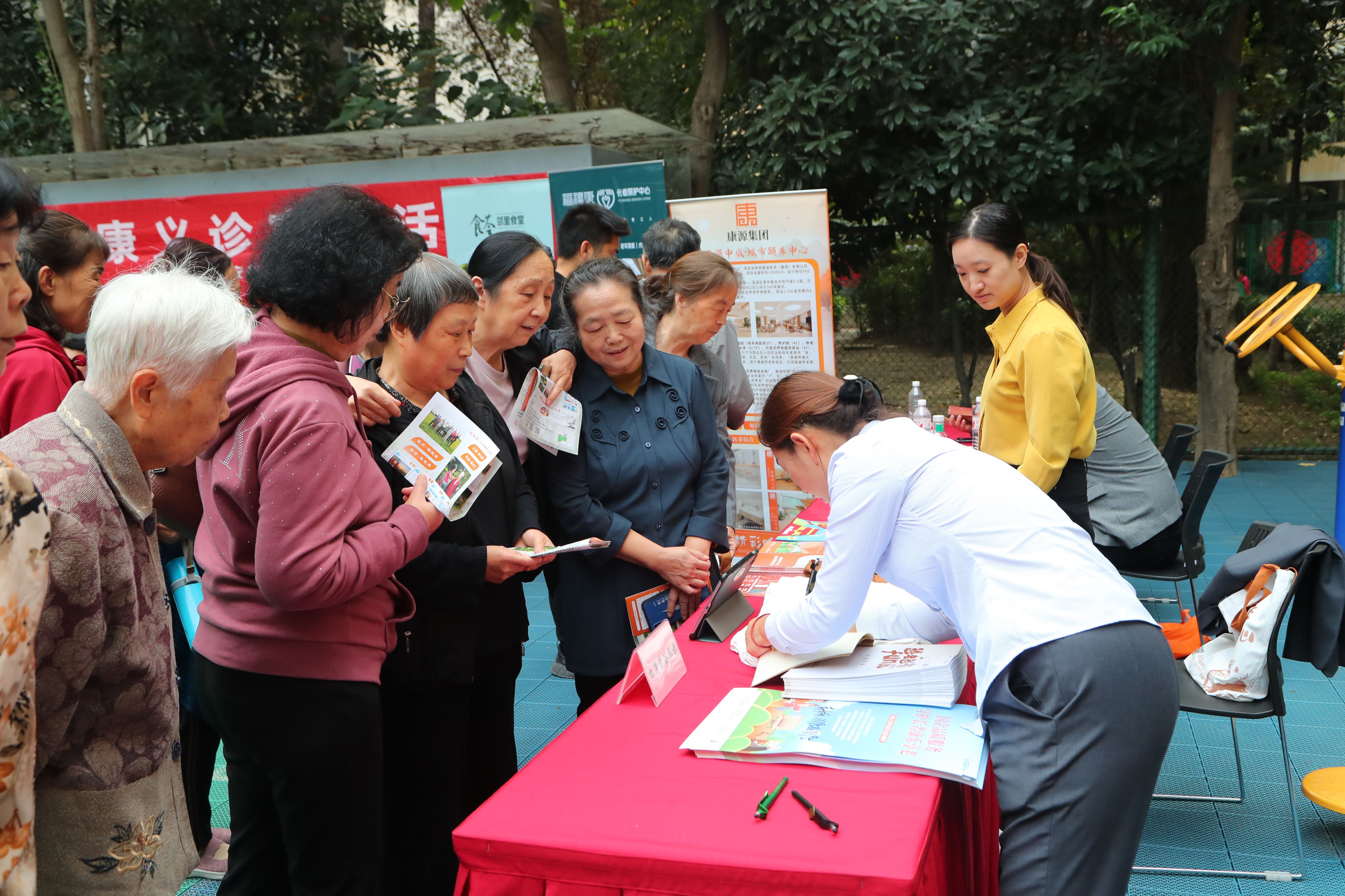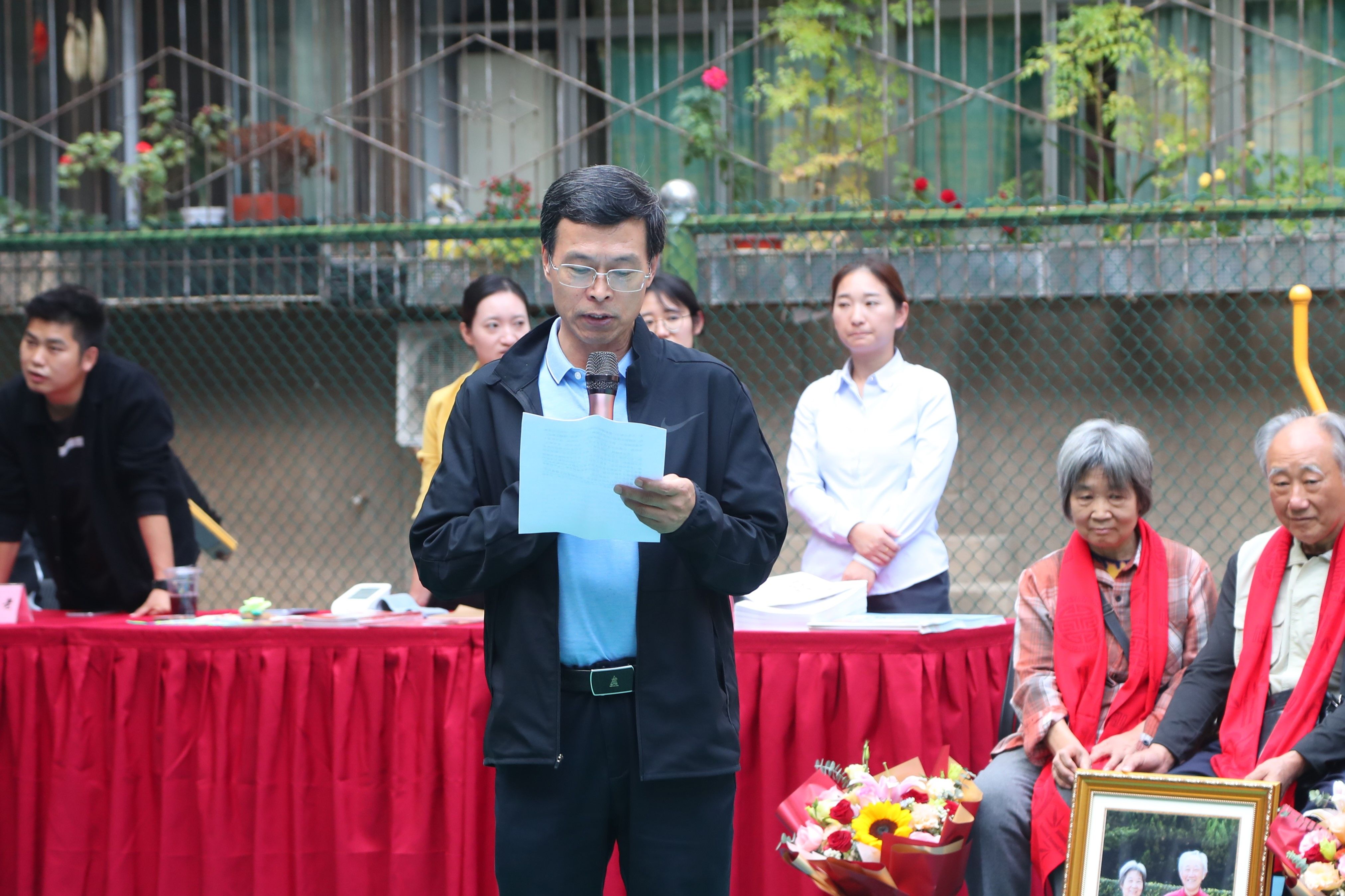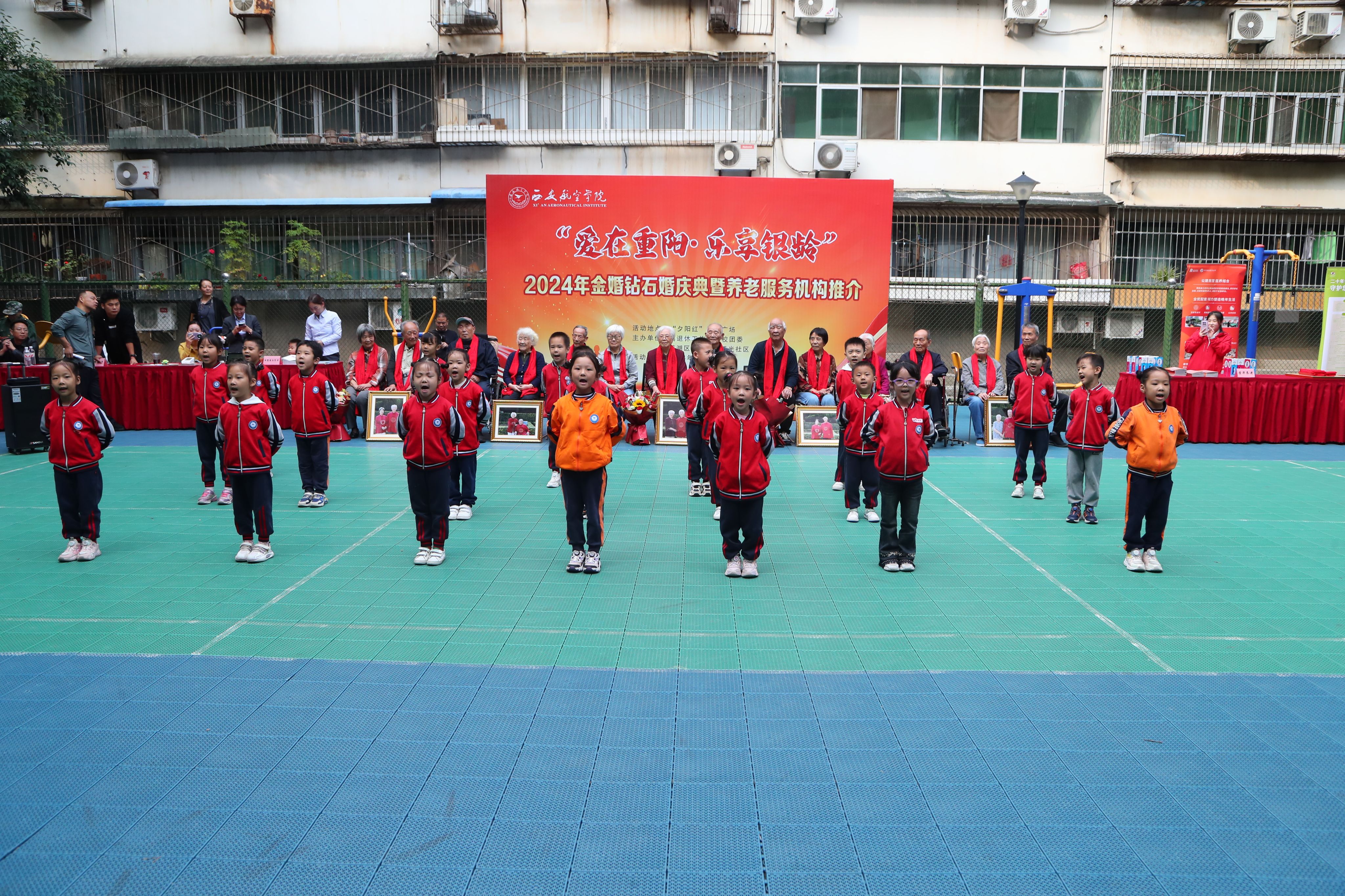 庆典仪式上,宋文学为学校8对金婚钻石婚夫妇佩戴喜庆围巾,赠送纪念照,大学生志愿者和幼儿园小朋友一起为金婚钻石婚的老爷爷老奶奶敬献了鲜花,离退休“夕阳红”艺术团舞蹈队和幼儿园小朋友还呈现了精彩的文艺节目。庆典仪式后,参展的七家养老机构向前来咨询的老同志展示养老服务项目中生活环境、硬件设施、服务特色、护理队伍以及入住流程等内容,养老服务机构推介活动把适老化产品和专业化养老服务送到了老同志的家门口,为有需求的老同志和家属“老有所养”服务提供了选择和了解,称心乐享银龄生活。
