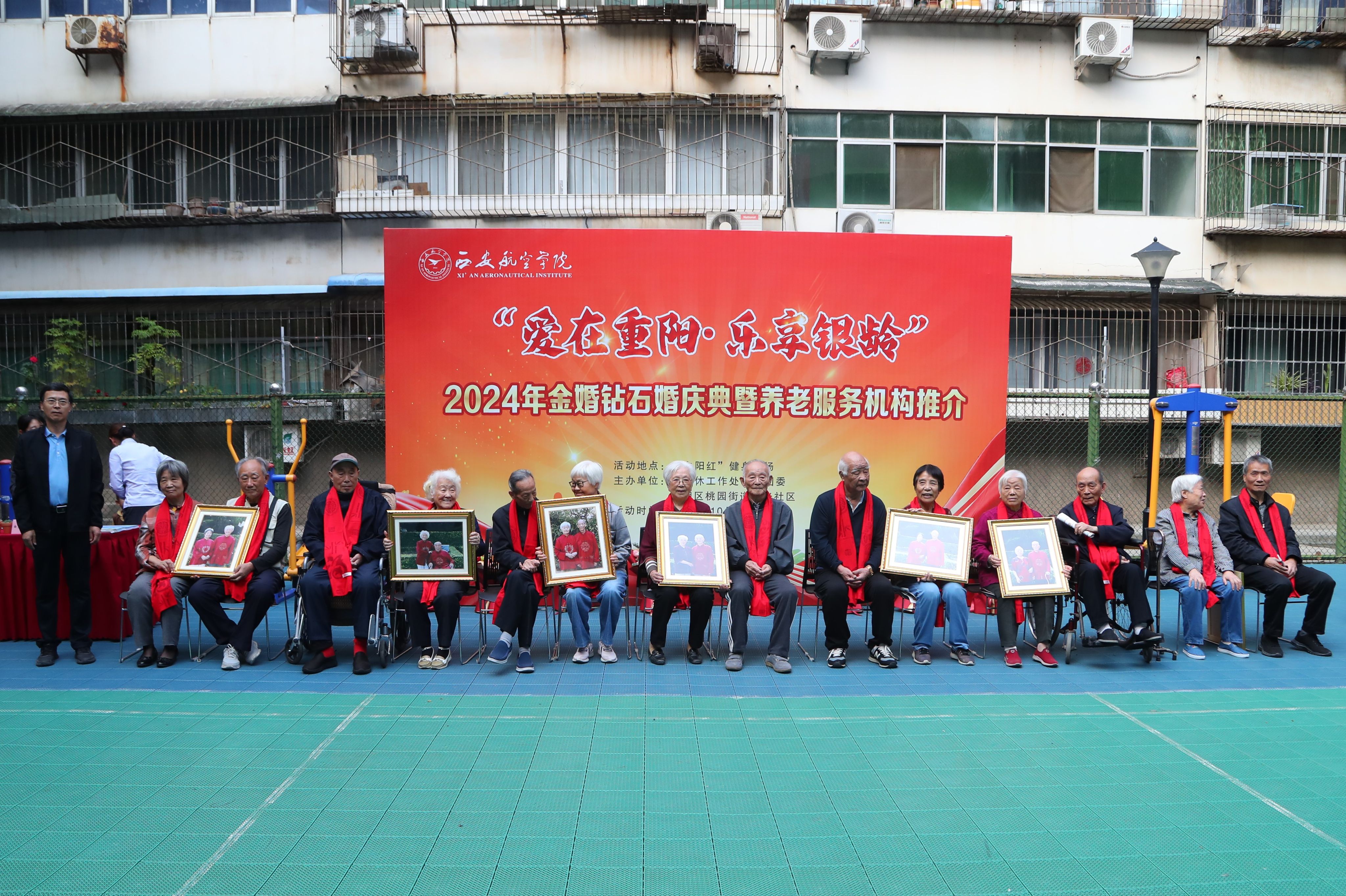 为弘扬中华民族尊老敬老优良传统,10月18日,贝博官网离退休工作处联合桃园街道延光社区共同举办了“爱在重阳·乐享银龄”2024年金婚钻石婚庆典暨养老服务机构推介活动。副校长宋文学出席庆典仪式,并现场与参展机构交流养老服务情况。党委组织部、人事处、校工会、校团委、离退休工作处等部门负责人,以及离退休老同志、家属和社区居民等200余人共同向金婚、钻石婚夫妇表示热烈祝贺和诚挚祝福。