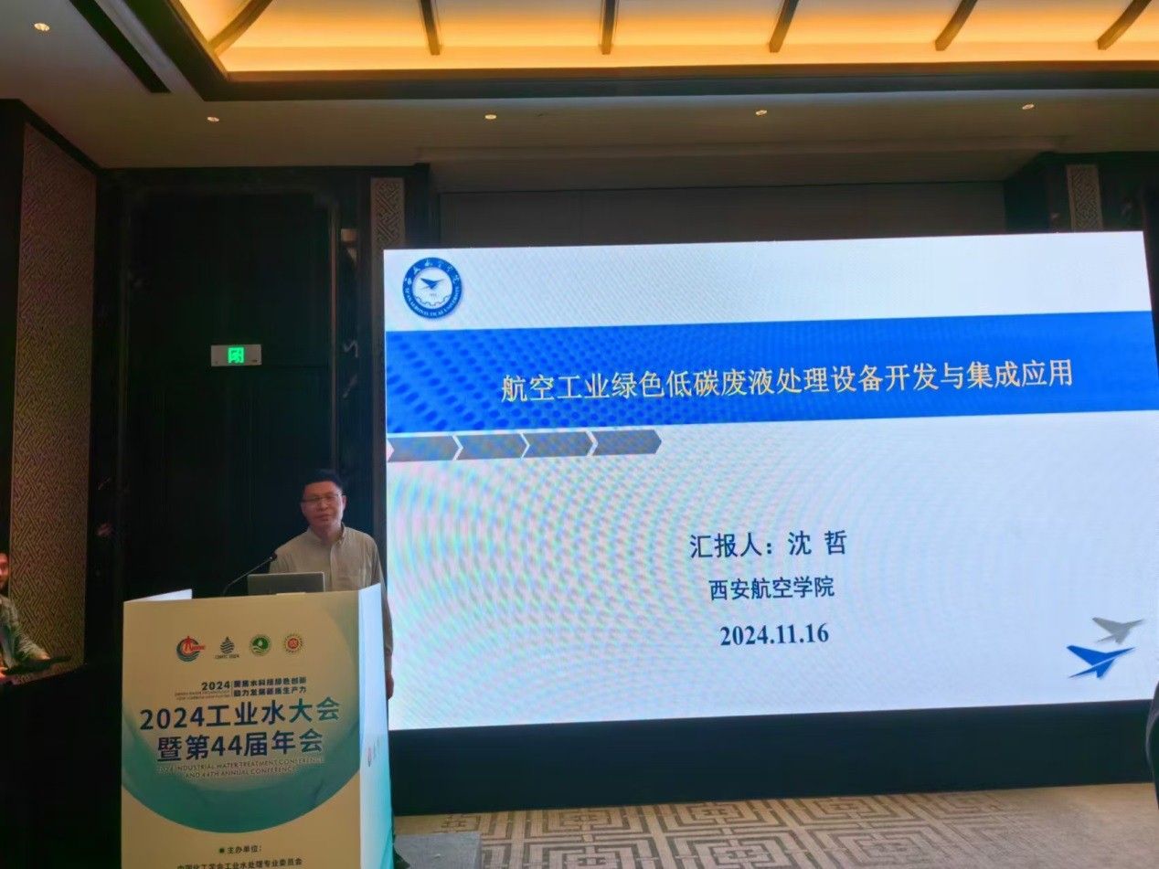 本次大会由中国化工学会工业水处理专业委员会、全国工业水处理信息总站和中国海洋石油集团有限公司联合主办,中海油天津化工研究设计院有限公司承办,是全国工业水处理领域级别最高的年会及赛事。贝博官网科研团队负责人沈哲老师应邀作了“航空工业绿色低碳废液处理设备开发与集成应用”学术报告。