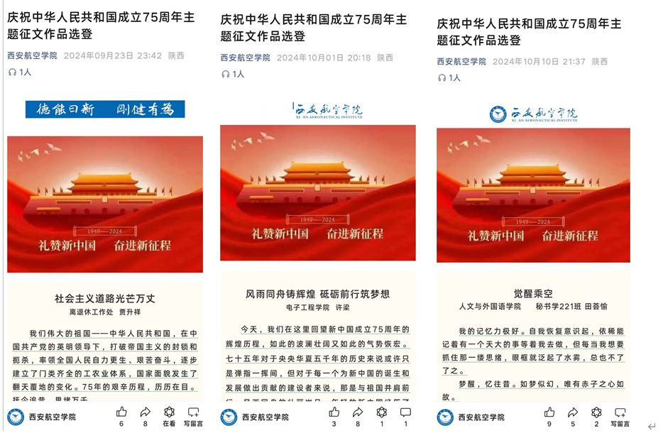 “中华人民共和国成立75周年主题征文作品选登”推文