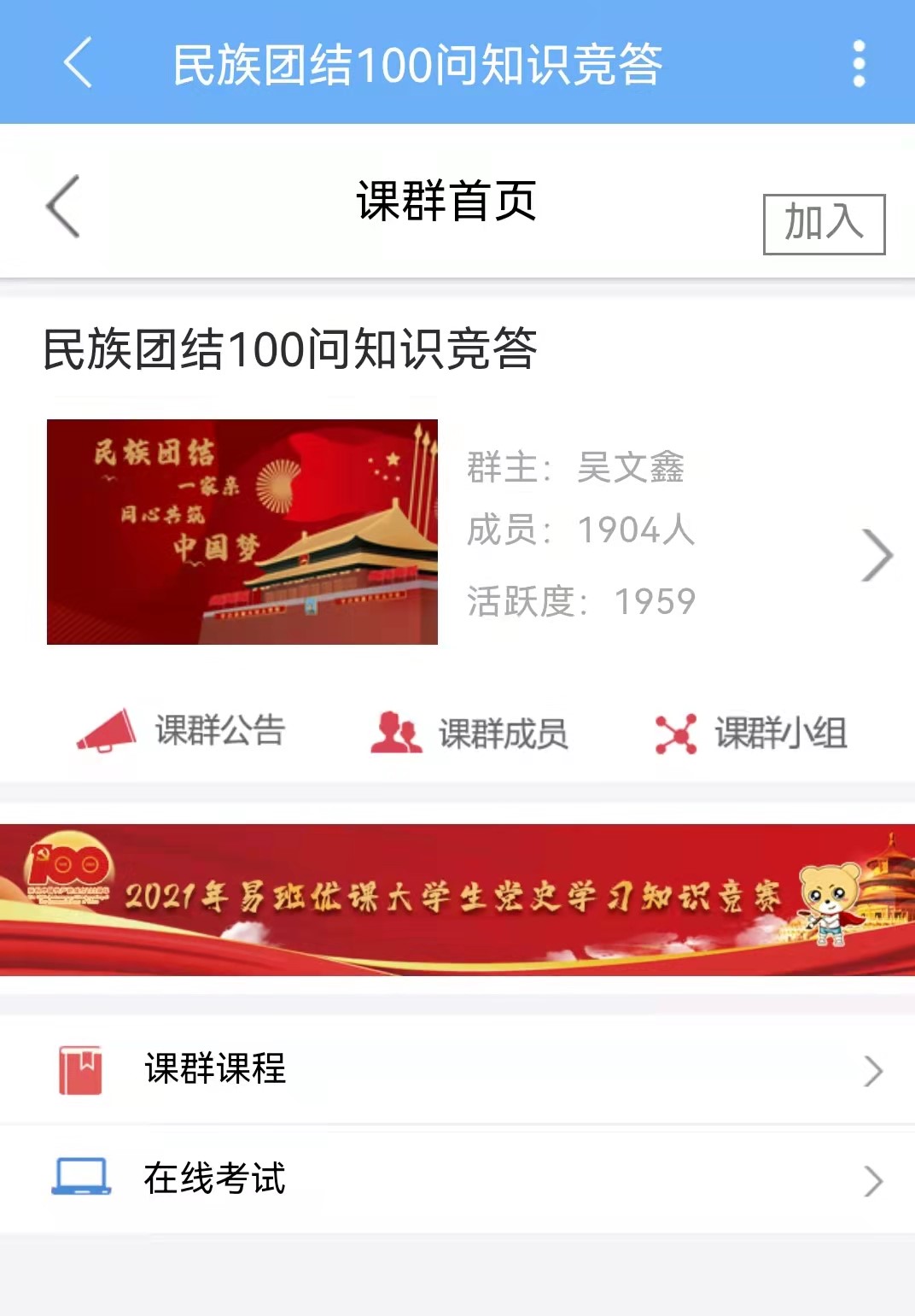 9月下旬,各学院在学生工作部(处)的安排部署下开展了学习中央民族工作会议主题班会,学习会议精神,畅谈学习体会;并在易班线上平台开展了民族团结100问知识竞答活动,吸引了1900余名学生参与答题。进一步铸牢贝博官网学生中华民族共同体意识,牢固树立法制意识及正确的国家观、民族观、历史观、文化观、宗教观。