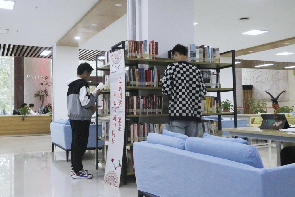学校图书馆分别于两校区遴选了百余册以少数民族文化为题材的经典文学作品、人物传记、民族风土人情、传统文化等相关刊物书籍,设置了专题图书角,吸引大量师生浏览借阅,营造浓厚的阅读氛围,有效扩大民族团结教育阵地。