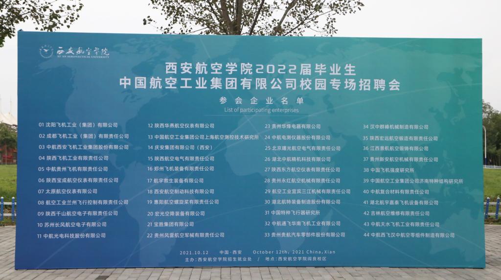 10月12日,学校在阎良校区举办2022届毕业生中国航空工业集团有限公司(以下简称“航空工业”)专场招聘会,航空工业集团下属45家企业参会。