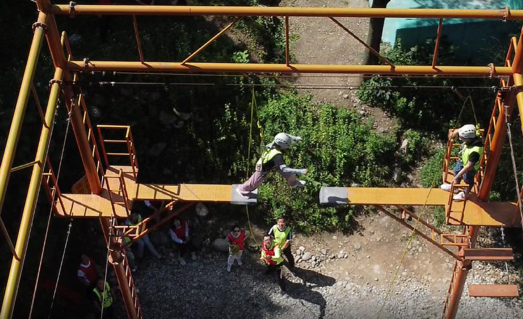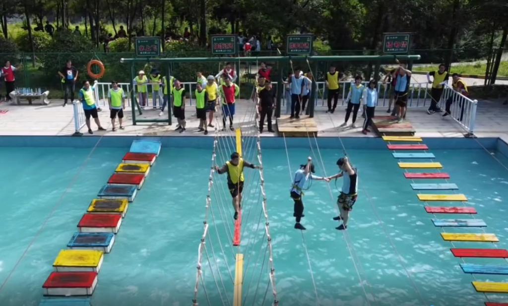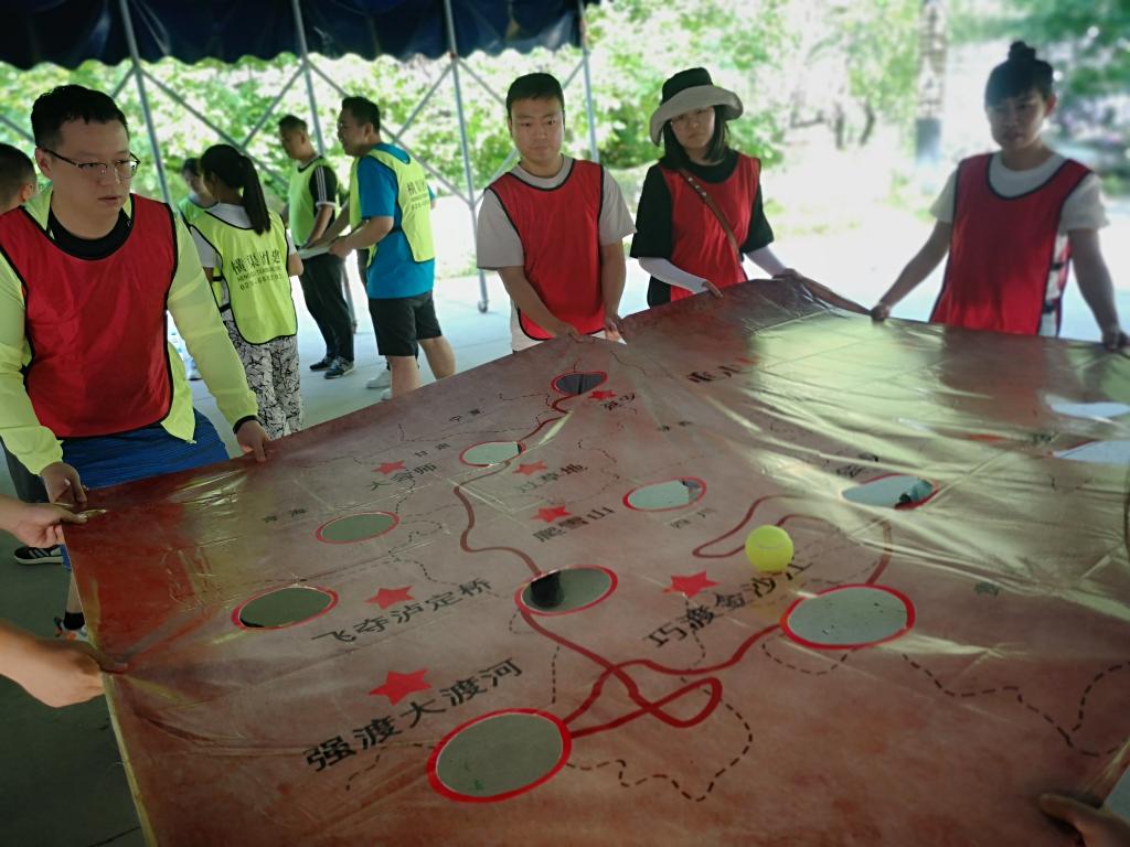 本次活动共由8个项目组成,在历时一天半的体验式活动中,通过竞争与合作的方式经历了一场减压与成长之旅。开营仪式活动中,通过队名、队徽、队歌等团队文化建设与展示活动促进两校区老师之间交流,形成了热烈的团队氛围;在“重走长征路”和“重温党史”两个环节中,所有成员你争我先,充分展示竞技小组的党史知识储备,在趣味游戏中重温党史,接受教育。“篝火晚会”展演,现场气氛热烈,节目异彩纷呈,诗朗诵、唱歌、舞蹈、双簧、三句半等各种才艺纷纷登场,献礼中国共产党100周年华诞。在挑战“高空断桥”的环节,大家互相鼓励,加油打气,帮助挑战者克服心中的恐惧和困难,实现目标,在挑战自我的同时,收获满满的友谊。在“旱地冰壶”游戏比拼中,各小组通过战术技巧的分析与判断,个人和团队之间的配合,进一步凝聚团队意识和战斗力。在“飞夺泸定桥”的游戏环节中,所有成员组成一个强大的团队,不计个人得失,同舟共济,完成对全部成员的转移任务,在风险中收获满满的感动。在“水上项目”挑战环节,大家摩拳擦掌,跃跃欲试,在娱乐中释放压力,收获满满的快乐。
