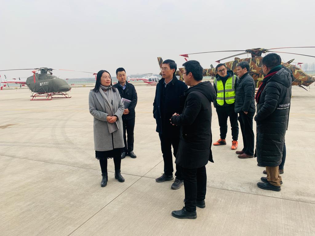 会后,宋文学一行参观了通用机场,了解了直飞机的研制、飞行控制等相关内容。