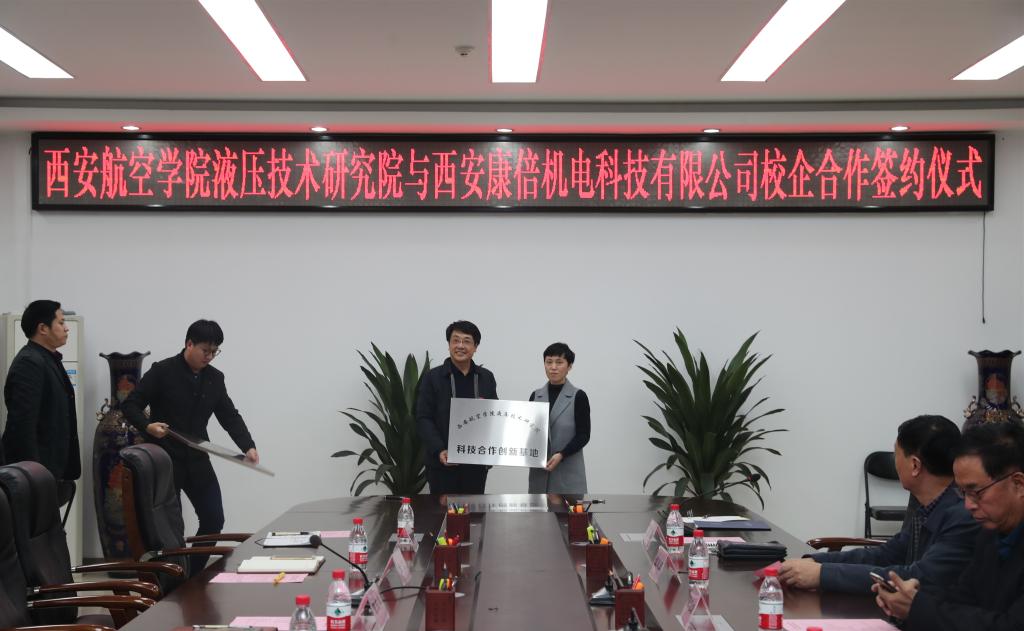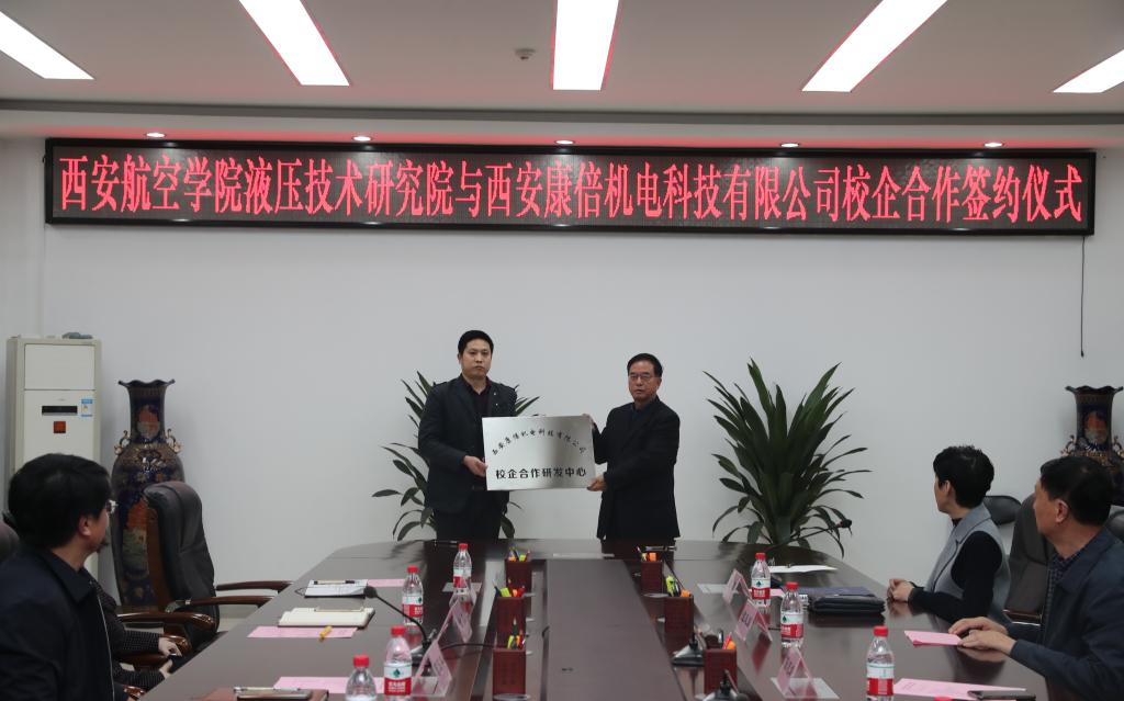 11月17日下午,液压技术研究院与西安康倍机电科技有限公司(以下简称康倍机电)校企合作协议签字仪式在沣惠校区九楼会议室举行。陕西决咨委专家组组长陈志靖、军民融合促进会会长刘普选、副会长谭凤双,康倍机电董事长裴轶,贝博官网校长曹庆年、副校长金文、科技处副处长吕毅、机械工程学院副院长周小勇、液压技术研究院副院长李祥阳及教师代表参加了会议。会议由吕毅主持。