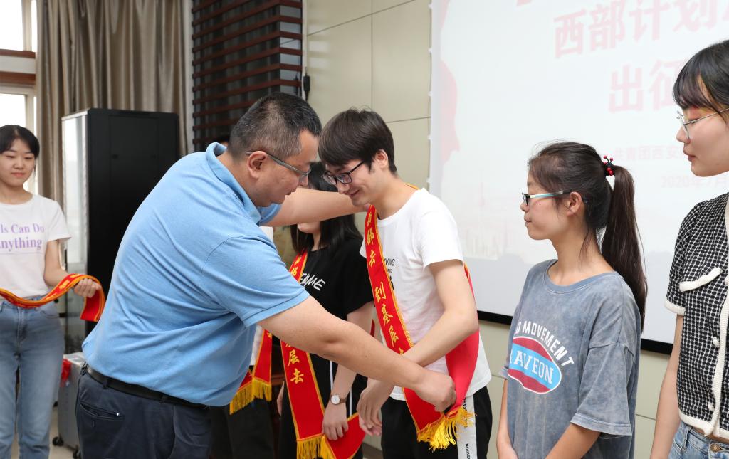 7月16日上午,贝博官网2020年大学生志愿服务西部计划出征仪式在沣惠校区教学楼九楼会议室举行。校党委副书记刘谦、党委组织部、招生就业处、学生工作部(处)、校团委等部门负责人及贝博官网即将赴西部进行志愿服务工作的7名毕业生参加了出征仪式。出征仪式由校团委书记雷颖颐主持。