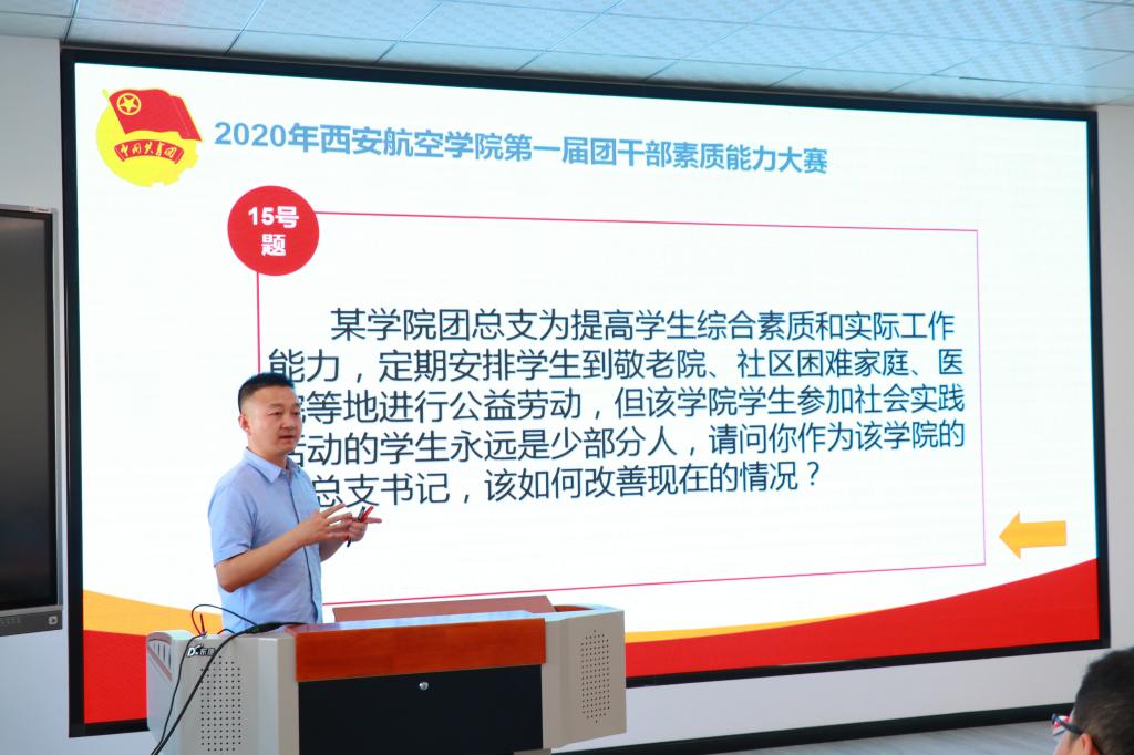 大赛分为教师组和学生组,由理论知识测试、主题团日活动视频展示、团课讲授及案例分析等四个环节组成。学校14名专兼职教师团干及286名学生团支部书记参加了此次比赛。选手们紧密结合时政热点,充分贴近青年特点,围绕习近平总书记来陕考察讲话精神、从共青团的发展历史看共产党领导的先进性、从疫情防控看制度自信、从战疫英雄看雷锋精神的传承、从5G发展看中国速度等方面讲授了一堂堂生动活泼、内涵丰富的微团课。案例分析环节内容涉及共青团基层组织建设、志愿服务、学生会改革、社团管理等贴近实际工作内容的案例,选手们以中省文件和团学工作规范为依据,联系具体工作实际进行阐述作答,既有解题思路,又有工作启示,充分展示了贝博官网青年团干良好的精神风貌。