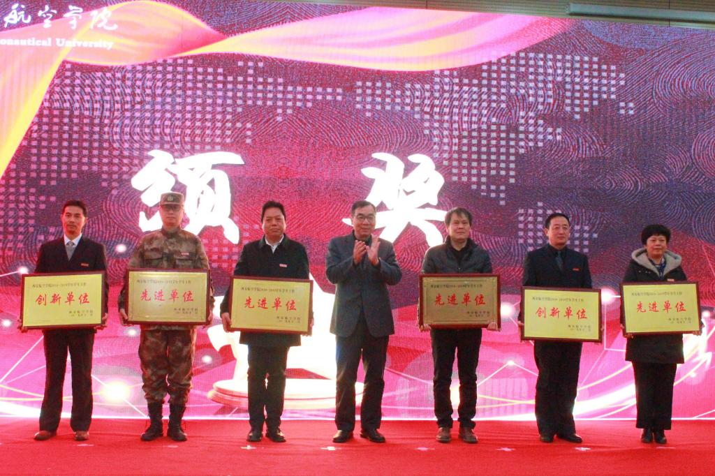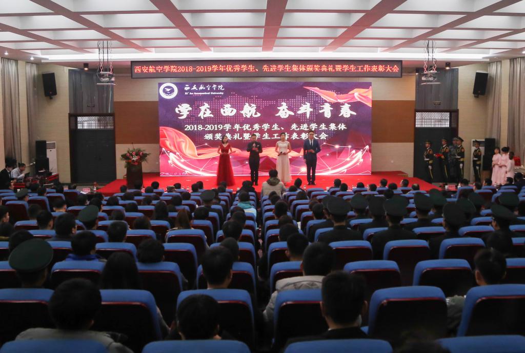 颁奖典礼前播放了展现2019年学校青年学生在思想宣传、资助帮扶、心理育人、社会实践、文体活动、志愿服务、双创比赛等各类舞台上的青春风采的专题视频——《学在西航》。
