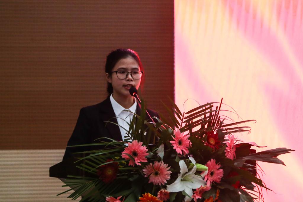 接着,典礼在雄壮的国歌声中拉开帷幕。今年学生工作表彰围绕学生“德、智、体、美、劳”全面发展特别增设了求真求是之星、劳动实践之星、阳光文体之星、团结进取之星、创新创业之星等六个单项奖和“奋飞”校长特别奖学金。此外,会上还颁发了国家奖学金、优秀学生、优秀学生干部、班级引领奖、最具影响力学生团队等荣誉。同时对社会实践先进单位、学生工作先进单位、学生工作创新单位、就业工作先进集体等进行了表彰。“奋飞”校长特别奖学金、国家奖学金获得者罗娇代表受表彰的学生作了发言。