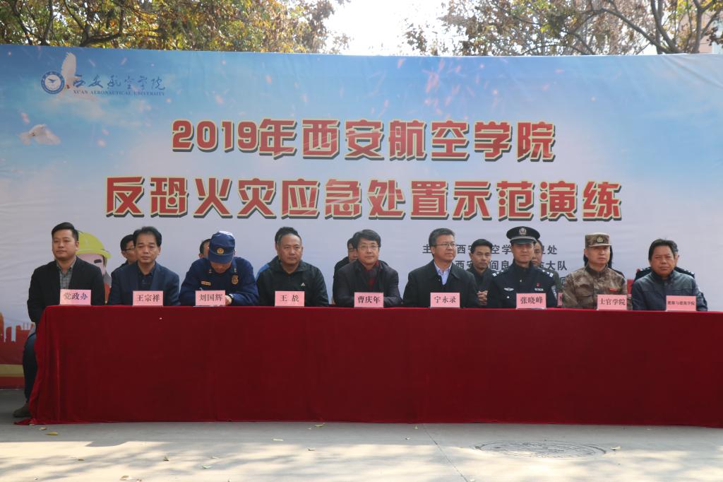11月21日,2019年BB贝博艾弗森官方网站反恐火灾应急处置示范演练在阎良校区举行。校长曹庆年、副校长宁永录,西安市公安局阎良分局国保大队、蓝天路派出所、西安市阎良区消防大队,学校保卫处、党政办、教务处、学生处、校团委、后勤保障处、校办工厂、图书馆及阎良校区各二级学院有关负责人及300余名师生现场观摩演练。演练由保卫处主办,士官学院及能源与建筑学院承办。