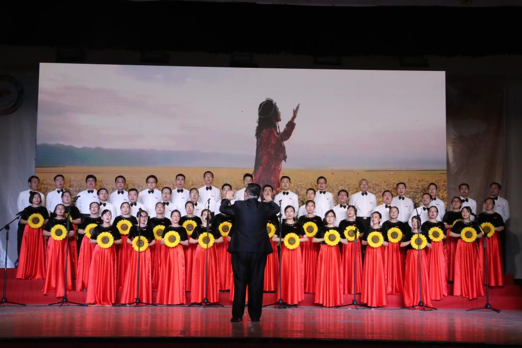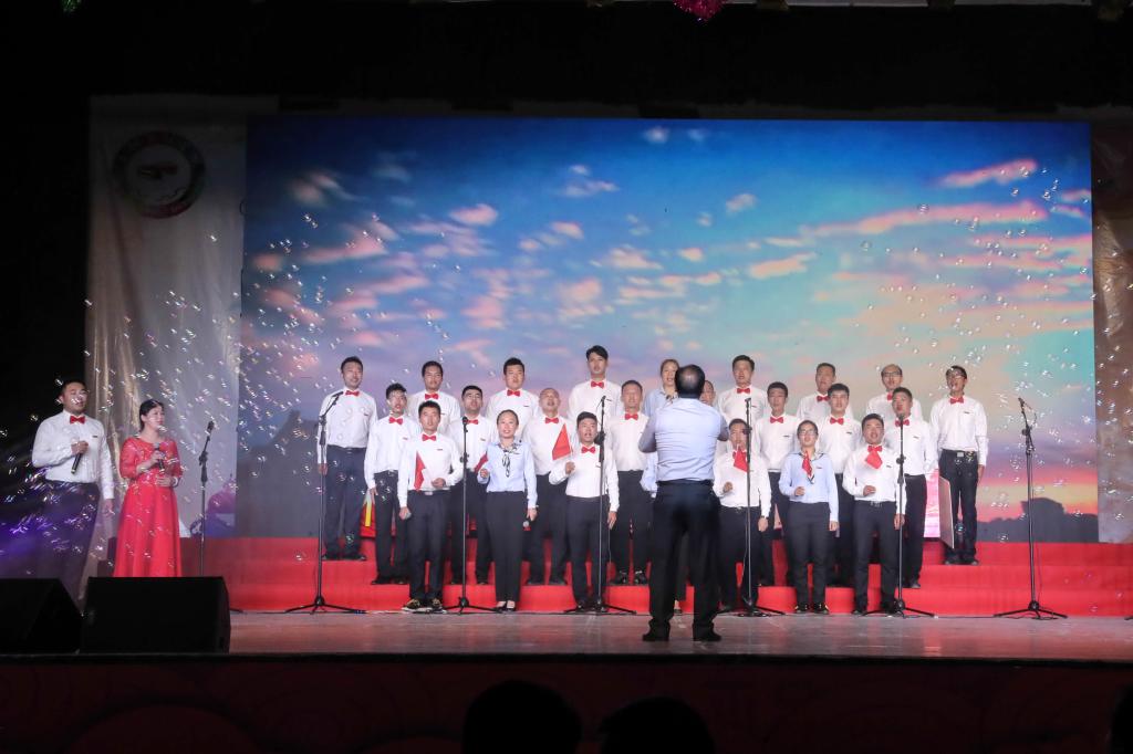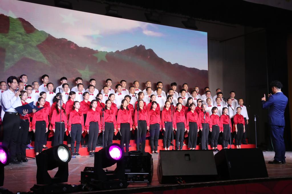 一首首鼓舞人心、催人奋进的歌曲,热情讴歌了伟大祖国七十年艰苦跋涉历经风雨沧桑,七十年不倦探索收获累累硕果。在活动中,各支队伍表演形式新颖独特,采用领诵、领唱、伴舞、伴奏等多种艺术形式,用歌声表达出西航人对党、国家和学校的由衷赞美和无比热爱,表现出西航人重任在肩、使命在心,与祖国共同走向复兴,创造辉煌的坚定信念。表演或慷慨激昂,或优美柔和,使在场的观众感慨万分、心潮澎湃,赢得了台下观众们阵阵掌声。活动最后,学校领导与师生们一同演唱了《我们走在大路上》。