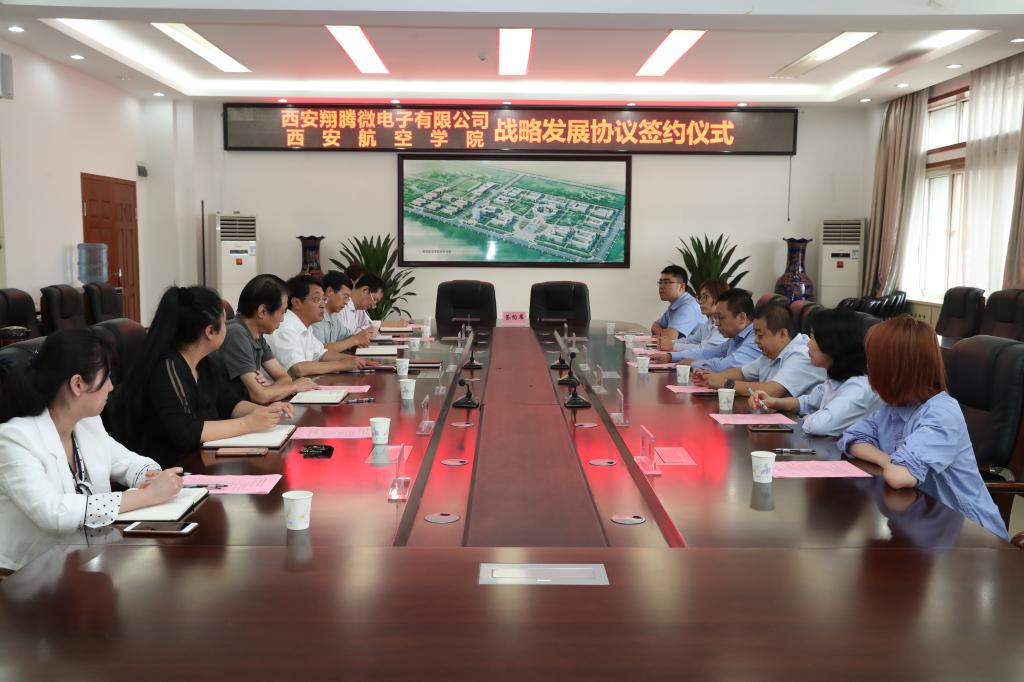 9月12日上午,贝博官网与西安翔腾微电子科技有限公司战略发展协议签约仪式在沣惠校区举行。西安翔腾微电子科技有限公司总经理田泽、总监邵刚,贝博官网校长曹庆年、副校长宋文学,教务处、计算机学院、电子工程学院相关负责人等出席了签约仪式。签约仪式由宋文学主持。