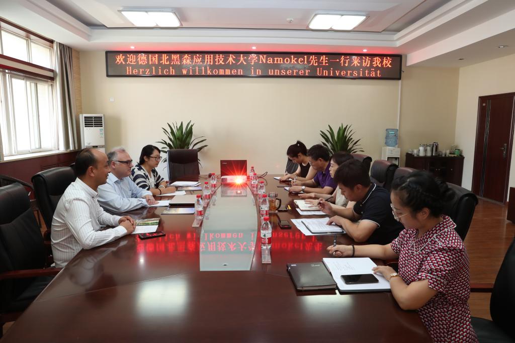 9月2日,德国北黑森应用技术大学副校长Namokel教授应邀来访贝博官网,深入洽谈两校合作办学事宜。副校长金文出席座谈会,国际合作与交流处、机械工程学院负责同志和德中教育文化交流协会项目负责人参加了座谈。会议由国际合作与交流处处长申良主持。