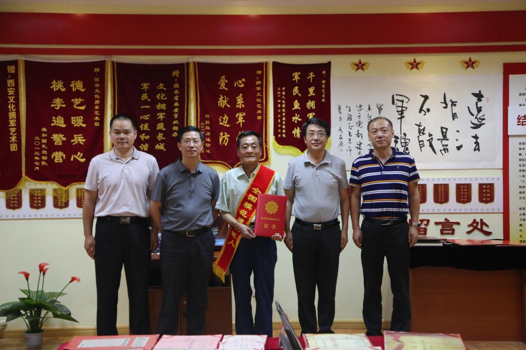 李新建和他的同事们先后被军队的四十多个团级单位聘请为“艺术指导”、“文化艺术客座教授”、“革命传统教育辅导员”,并被授予“荣誉军人”的光荣称号。退役至今曾先后多次被陕西省双拥办、西安市等授予“爱国拥军模范”、“文明市民标兵”,荣获《中国双拥》年度人物入围奖。2015年BB贝博艾弗森官方网站创建了李新建同志“双拥爱国主义教育基地”,自成立以来,在贝博官网学生爱国主义教育及国防教育中发挥了积极作用。