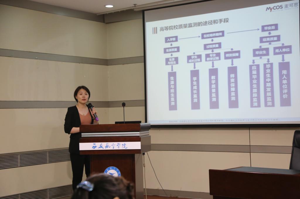 王梦萍从高等院校质量管理的基本理念切入,详细讲解了麦可思高等院校质量监测体系的运营架构。她以麦可思对贝博官网2017届应届毕业生培养质量跟踪评价报告、2018年用人单位评价报告和2017级生源与招生评价报告为依据,结合本科教学工作合格评估7个一级指标,对贝博官网人才培养定位、教学质量、专业与课程建设、学生指导与服务、生源等方面作了详实的数据解读。并通过与全国和区域同类院校作对比分析,全面客观地呈现出了贝博官网存在的不足之处,以及与同类院校之间的差距,并提出了针对性改进意见和建议。