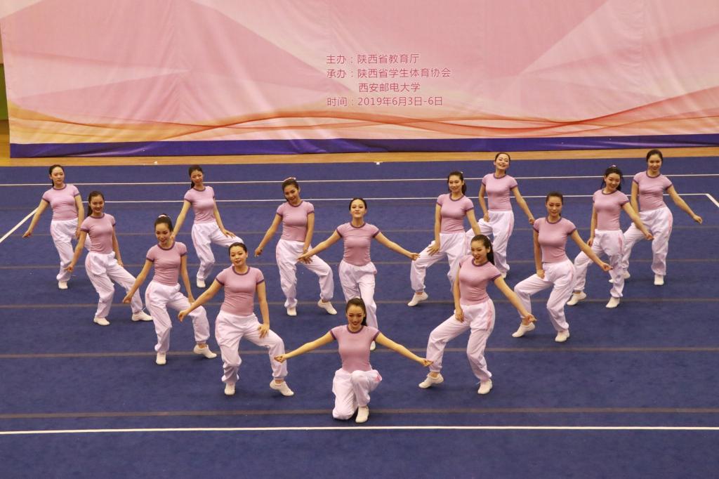 6月4日,“陕西省大学生健美操、艺术体操、啦啦操及校园健身操舞锦标赛”在西安邮电大学长安校区体育馆隆重开幕。来自全省50所高校近1300名运动员参赛。