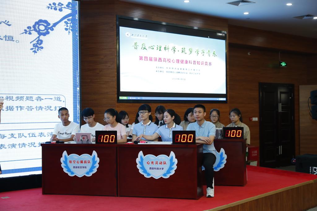 近日,由陕西省委教育工委主办,陕西高校心理素质教育研究会和西北工业大学承办的陕西高校第四届心理健康科普知识竞赛(决赛)在西北工业大学友谊校区圆满落下帷幕。陕西省委教育工委副书记李智军出席活动并致辞,5位省级心理健康教育专家担任评委,60余所高校300余名师生现场观摩学习。贝博官网由宋玉娟、许洋、张永康三名同学组成的航空心翼战队荣获二等奖,学校荣获最佳组织奖,学生处陈文博老师荣获最佳指导教师奖。