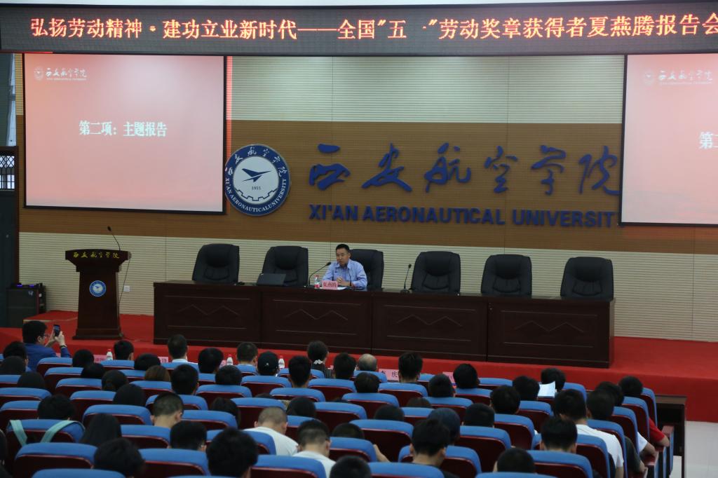 5月16日,全国“五一”劳动奖章获得者、贝博官网优秀校友、中国飞行试验研究院中飞通用航空有限责任公司维修部技术室主任夏燕腾应邀在阎良校区为贝博官网师生做“弘扬劳动精神·建功立业新时代”主题报告。学生工作部(处)、后勤保障处、阎良校区各二级学院负责人、辅导员及学生代表300余人参加了报告会。报告会由学生处副处长赵琳主持。