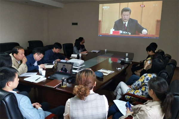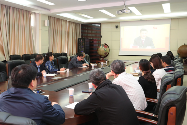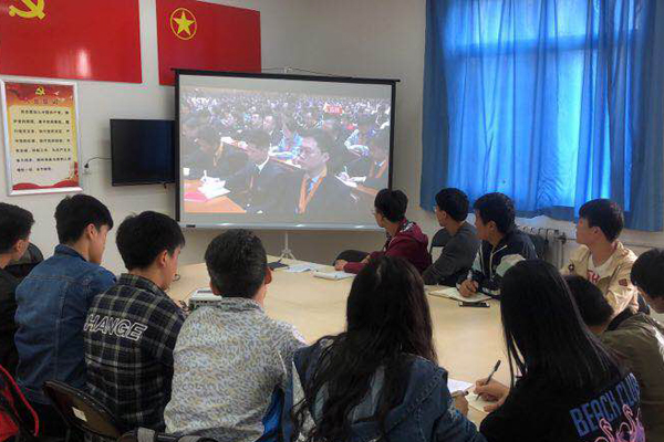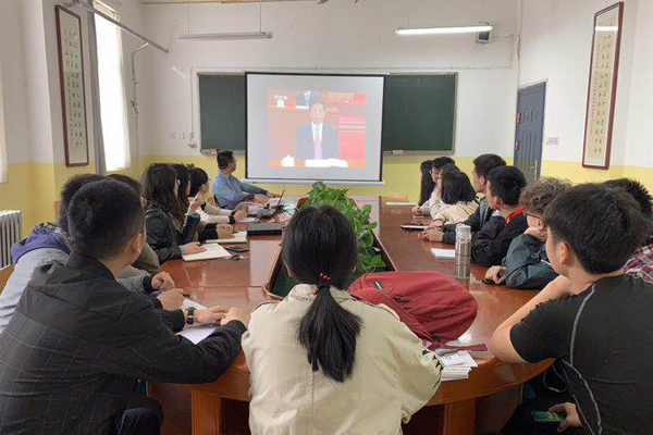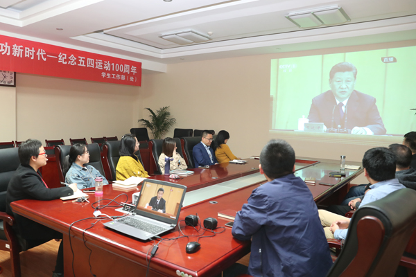 纪念五四运动100周年大会于4月30日上午10时30分在人民大会堂举行。中共中央总书记、国家主席、中央军委主席习近平出席大会并发表重要讲话。学校领导、党委委员和党群机关负责人在沣惠校区教学楼九楼会议室集体收看了大会直播。学校团委、学生工作部,各党总支、直属党支部分别组织团学组织、学生辅导员、本单位师生进行了集体收看。